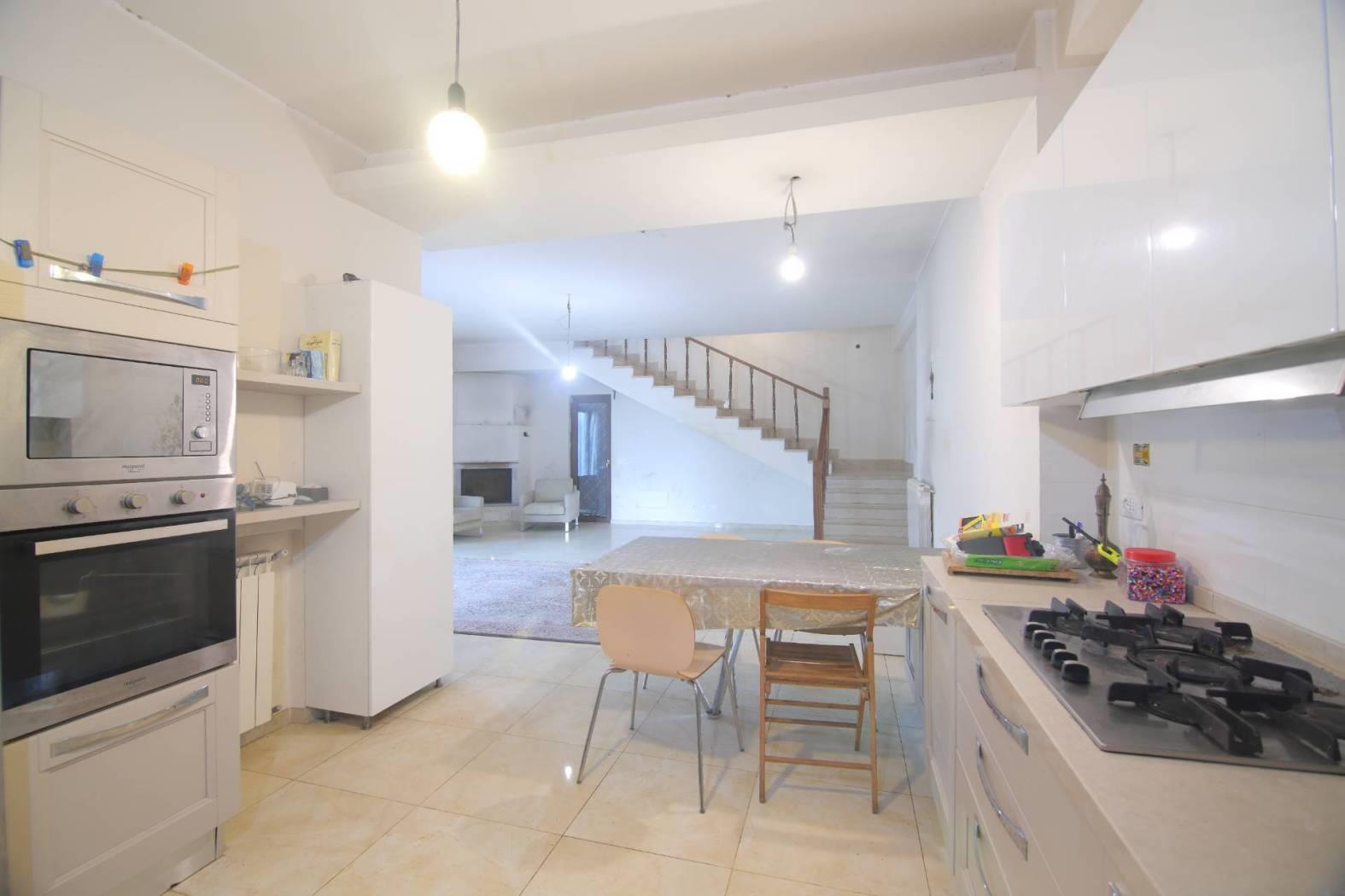 al piano terra rialzato troviamo un portico, appena varchiamo la porta d'ingresso troviamo un ampio salone doppio con camino, perfetto per trascorrere piacevoli momenti in famiglia, poi abbiamo una cucina spaziosa e abitabile, che è completamente attrezzata per preparare gustosi pasti e un comodissimo bagno.