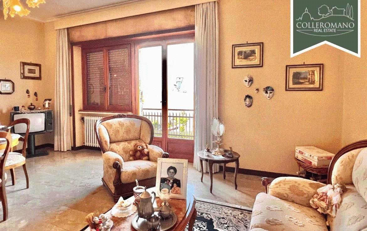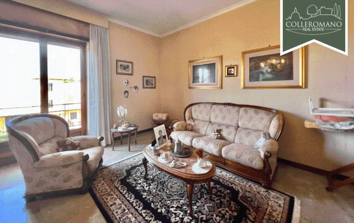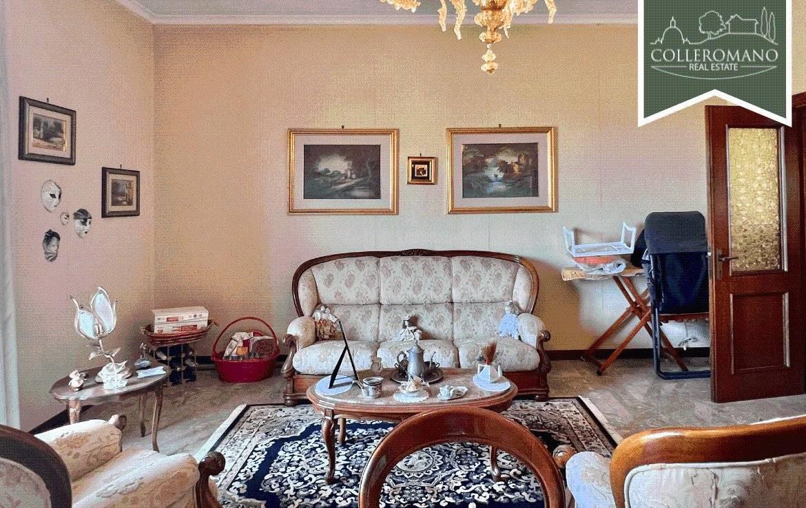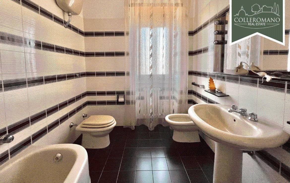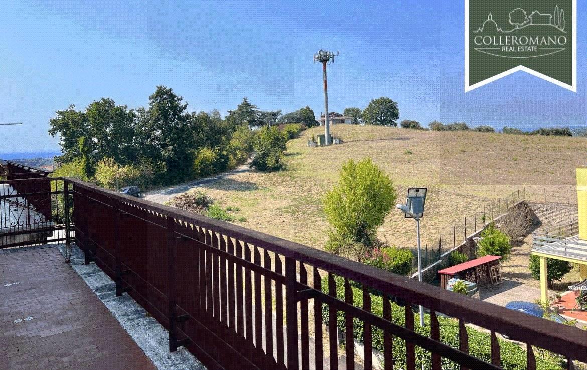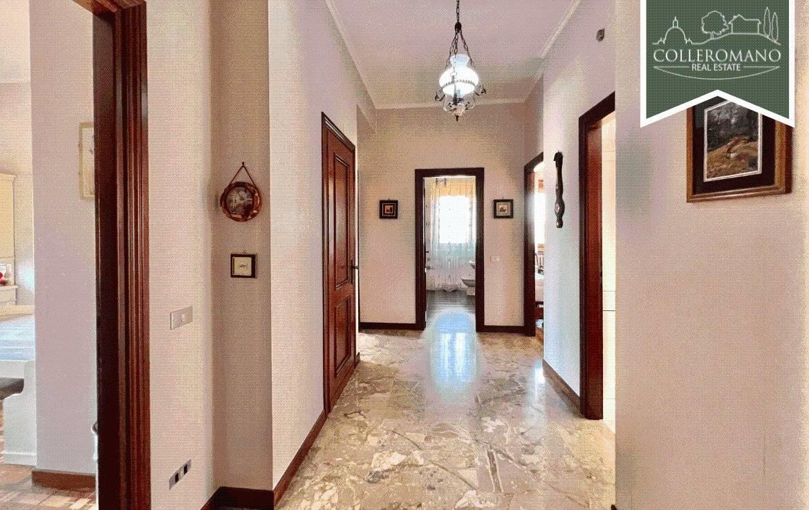 L'appartamento al piano terra, di circa 160 mq, è composto da un ampio ingresso, soggiorno, cucina abitabile con camino, tre ampie camere da letto e due bagni. Completa il piano un balcone panoramico.