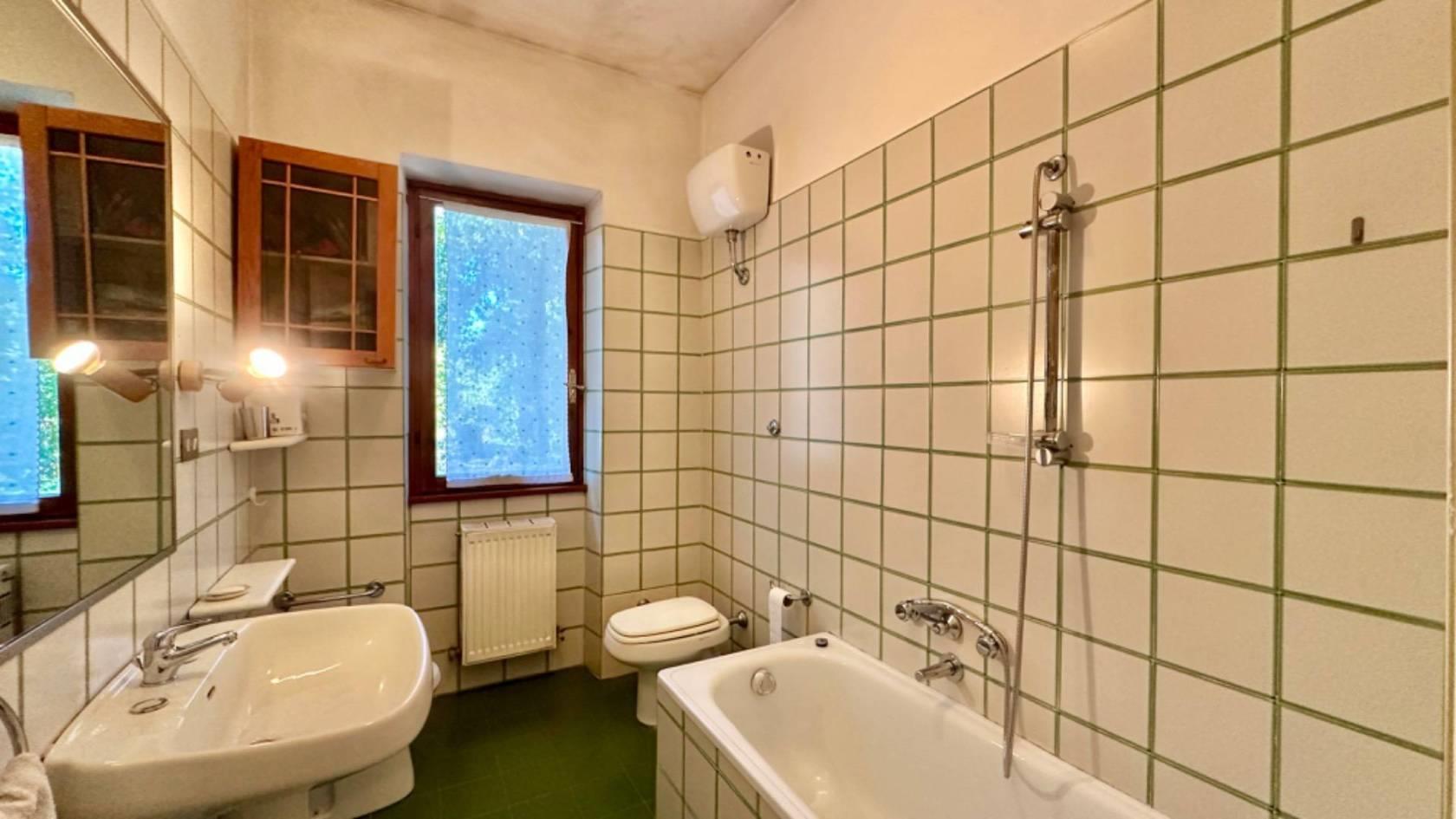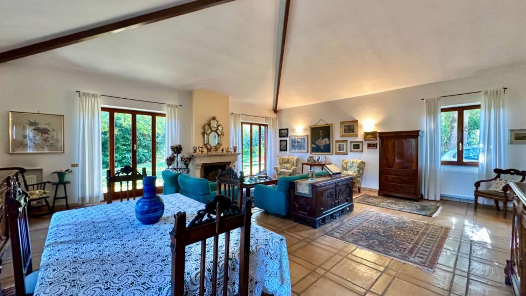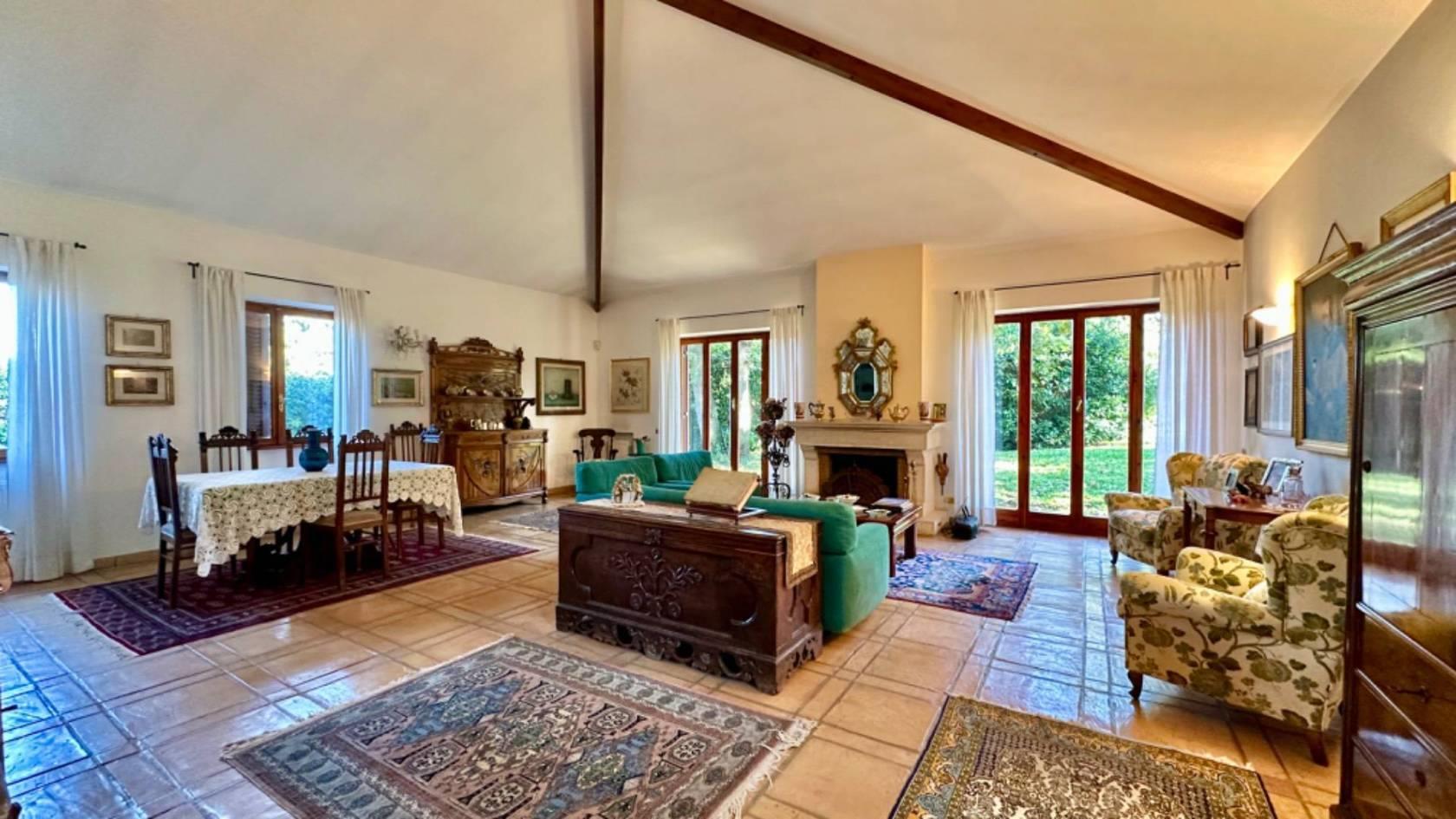 A questo livello abbiamo un ampio salone con camino con grandi porte finestre tutte con accesso all' esterno, una cucina abitabile con uscita sul giardino, un bagno per gli ospiti, tre camere da letto ognuna con il proprio servizio oltre ad una quarta ampia stanza.