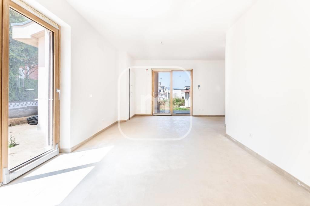 Piano Terra residenziale, composto da soggiorno pranzo, cucina a vista, camera matrimoniale, studio, bagno, portico e giardino. Piano Primo residenziale, due camere da letto, bagno e terrazza.
