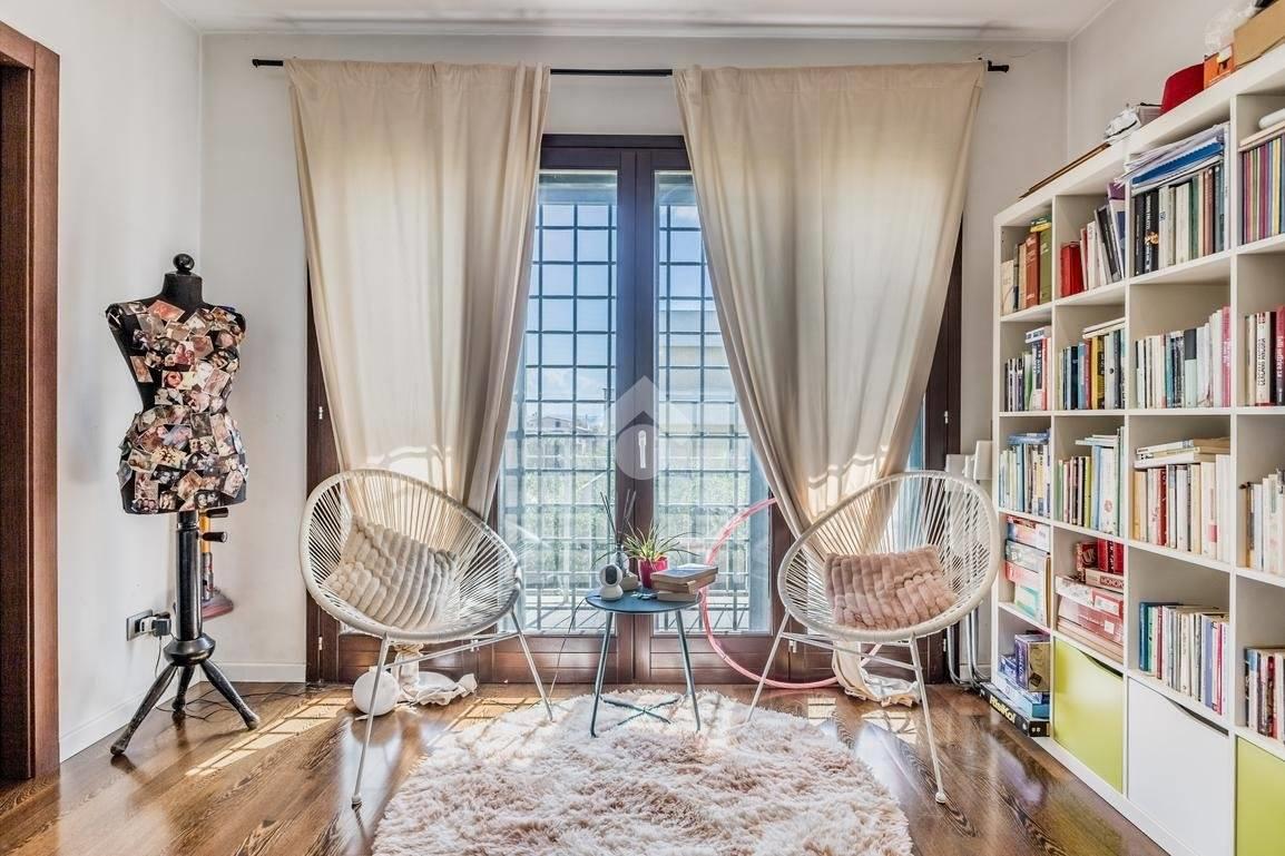 La zona notte comprende una spaziosa camera matrimoniale con bagno en suite, una seconda camera matrimoniale con balcone, una camera singola e un ulteriore bagno finestrato. La pavimentazione in parquet dona calore e eleganza agli ambienti.