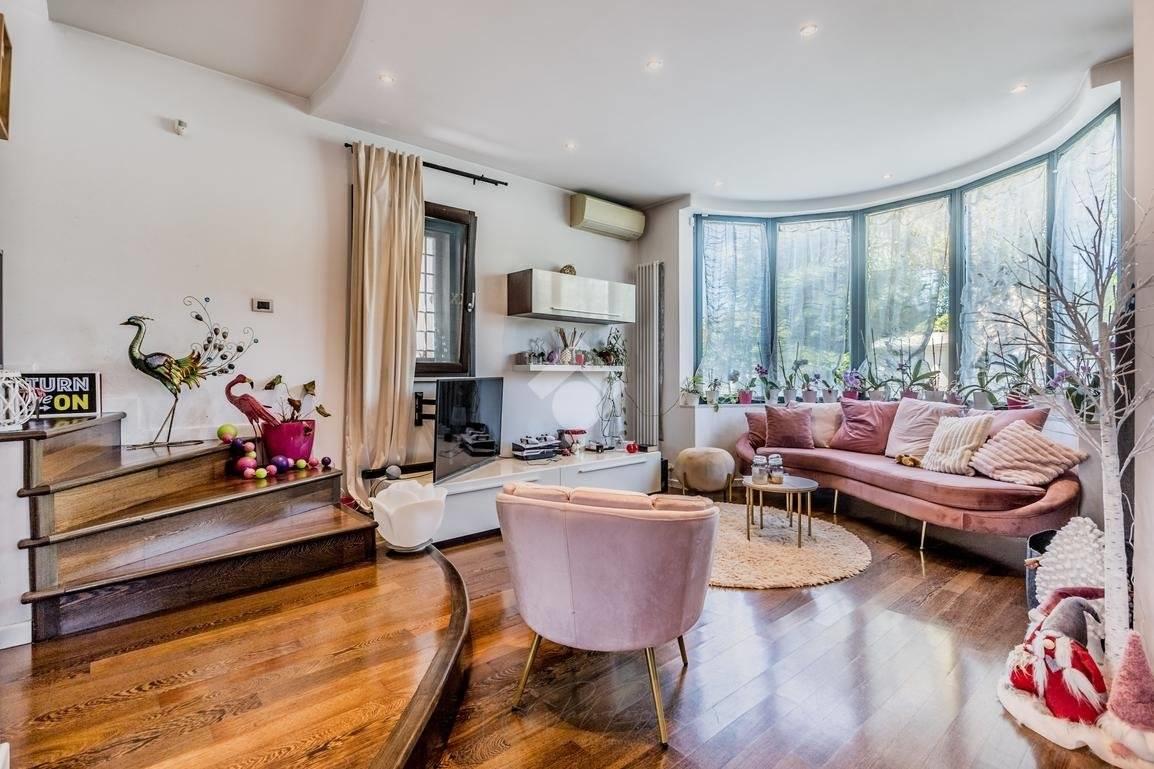 Proponiamo in vendita una splendida villa bifamiliare con giardino privato di circa 350 mq, situata nella tranquilla e residenziale zona di Valle Muricana — Prima Porta.