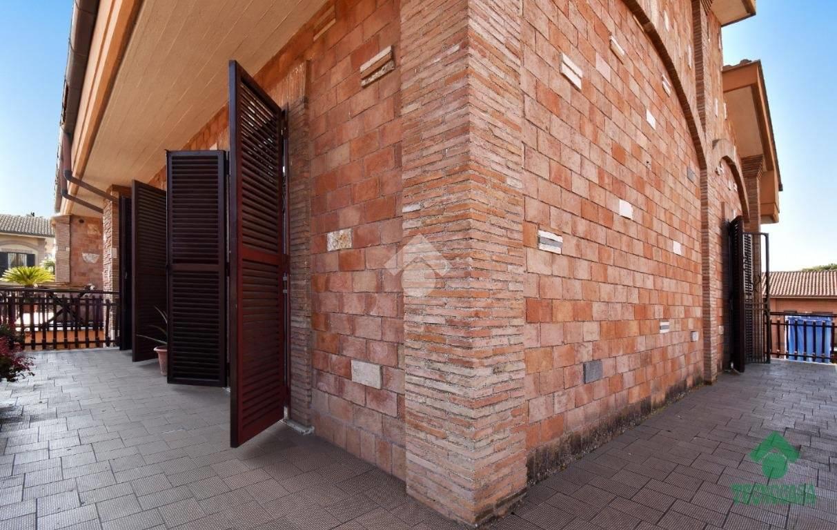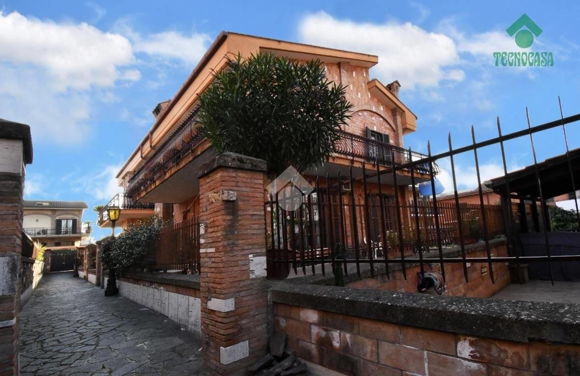 Via Atimeto In contesto residenziale proponiamo la vendita una porzione di Villino Bifamiliare La struttura del villino e la distribuzione degli spazi hanno creato un eccellente armonia tra gli ambienti mantenendo però un impianto tradizionale. Da un ampio giardino terrazzato si accede al piano terra dove troviamo un ampio soggiorno , una cucina molto grande e la zona pranzo con l' uscita su giardino terrazzato, bagno di servizio al piano. Attraverso la scala interna molto comoda possiamo accedere al piano primo , dove troviamo la zona notte composta da due camare matrimoniali, una cameretta e un comodo bagno. Tutto il piano è servito da un' ampia balconata. Al secondo piano troviamo un ulteriore camera da letto matrimoniale con bagno e balcone. Dal piano terra si accede tramite una comoda scala al piano inferiore che ha uanche un ingresso indiepndente dalla rampa dei box. L'ambiente luminoso e finestrato è un'ulter iore zona giorno servita anche da un camino (ampio salone, cucina e bagno). Completa la proprietà un box di 50 mq collegato direttamente al villino.
