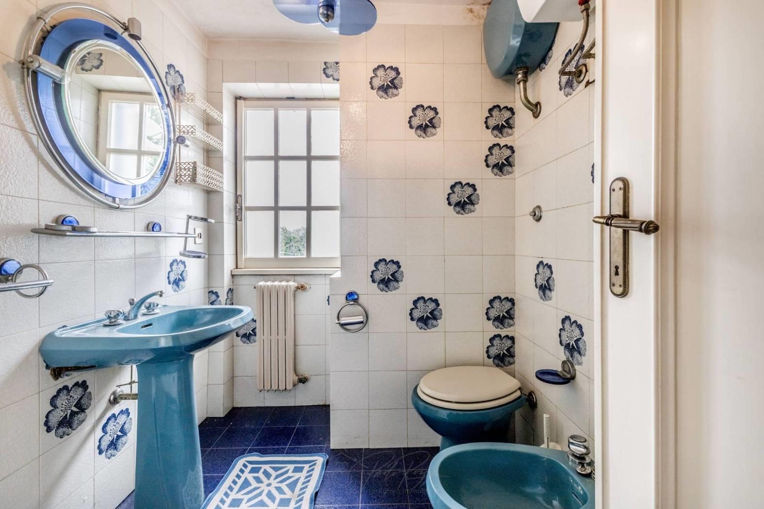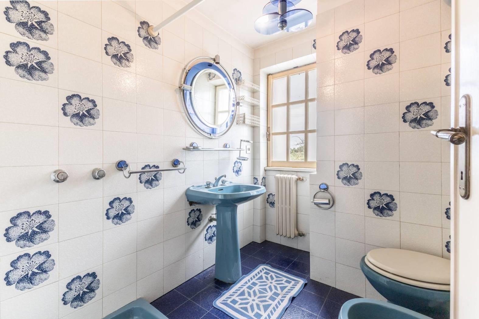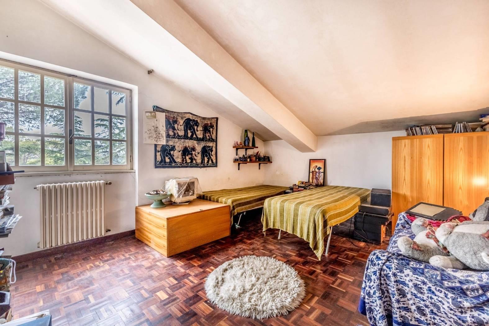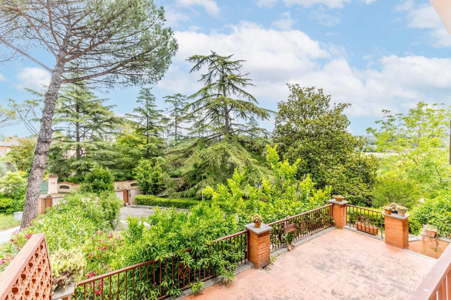 PARCO AZZURRO Via Palombarese Adiacente ingresso di Marco Simone in posizione Panoramica Immersa nel verde Splendida Porzione di Villa Bifamiliare di 260 Mq. c. a. con Entrata Indipendente pedonale e carrabile disposta su 3 piani fuori terra collegati tra loro da scala interna con 3000 Mq. c. a. di Giardino in parte pavimentato per parcheggi auto e un Box auto di 40 Mq. c. a. Possibilità divisibile per 2 nuclei familiari così composta: