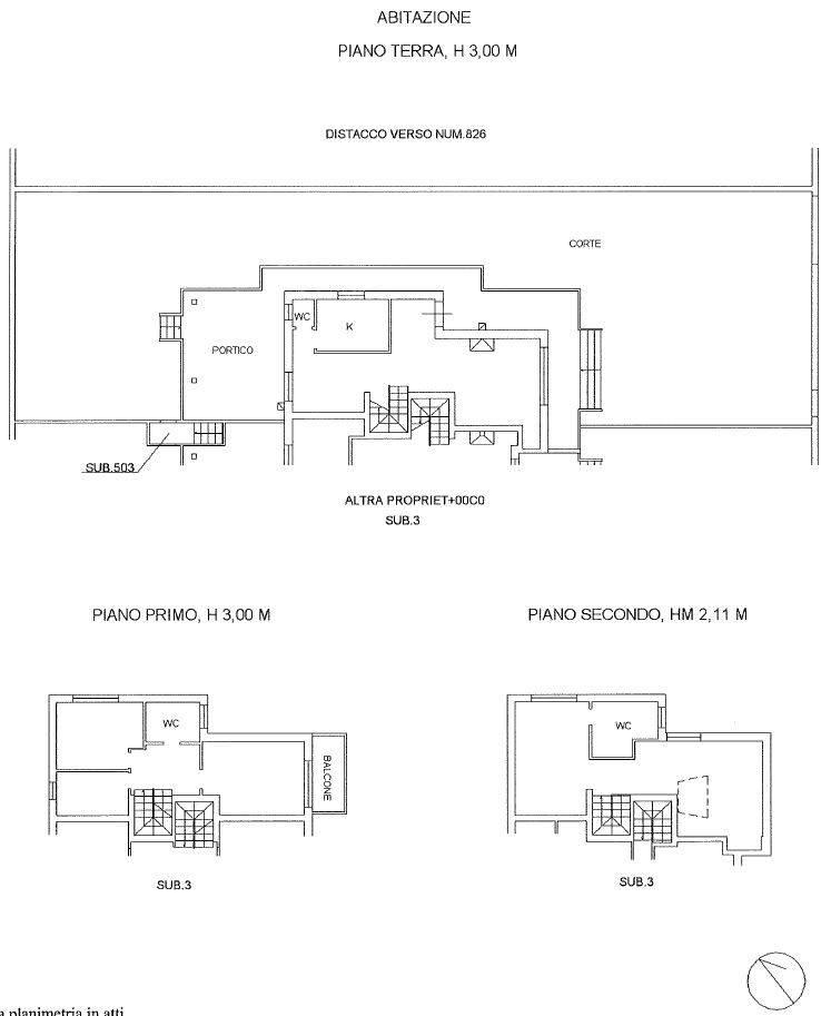 * **Primo piano**: **due camere matrimoniali**, **una camera singola**, **bagno con vasca in muratura** e **terrazzo**, perfetto per godere della vista sul verde.