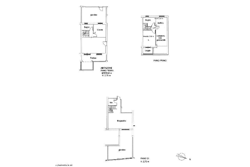 * Piano terra: ampio soggiorno con accesso diretto al giardino privato, cucina abitabile e bagno finestrato.
