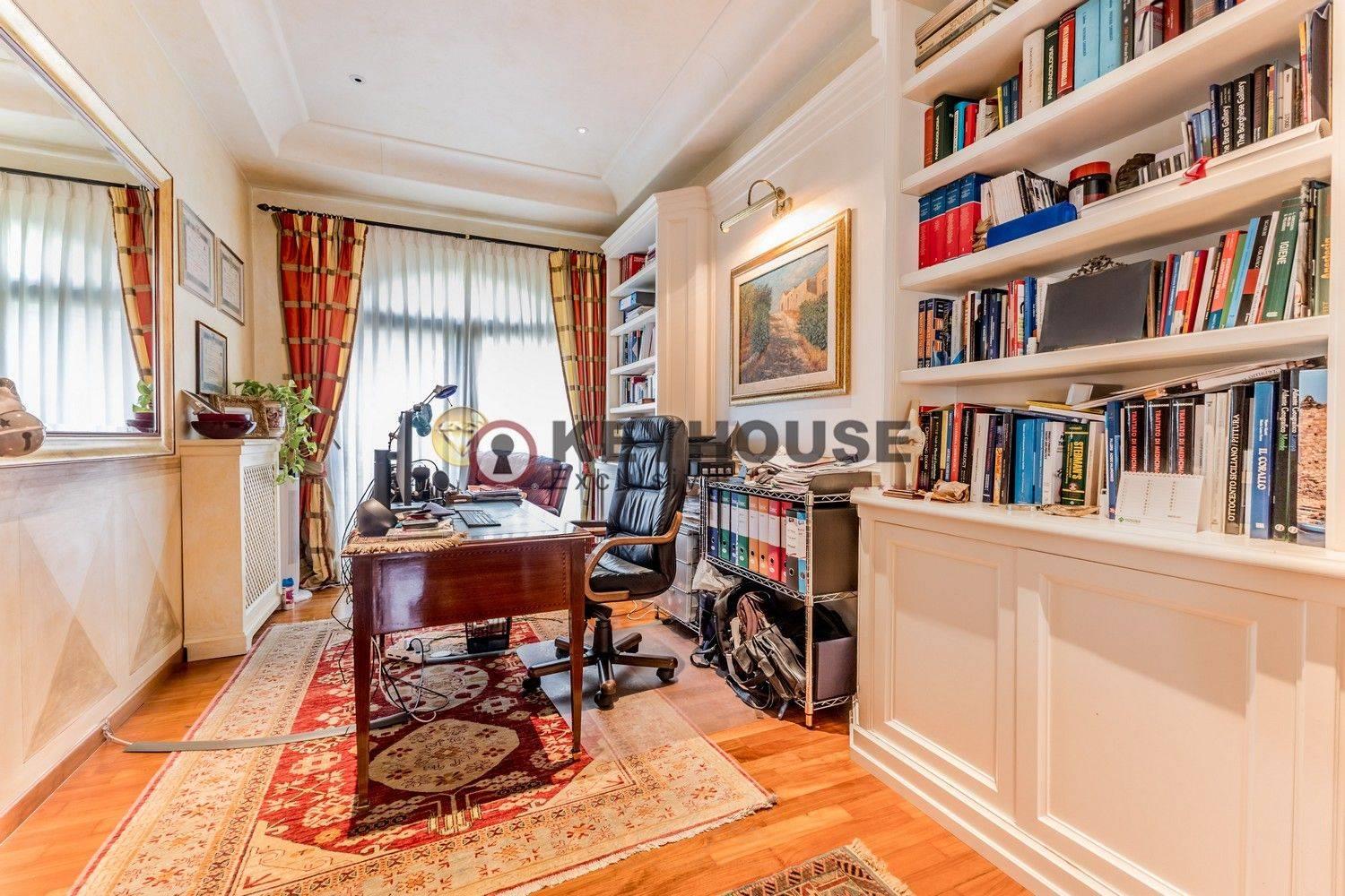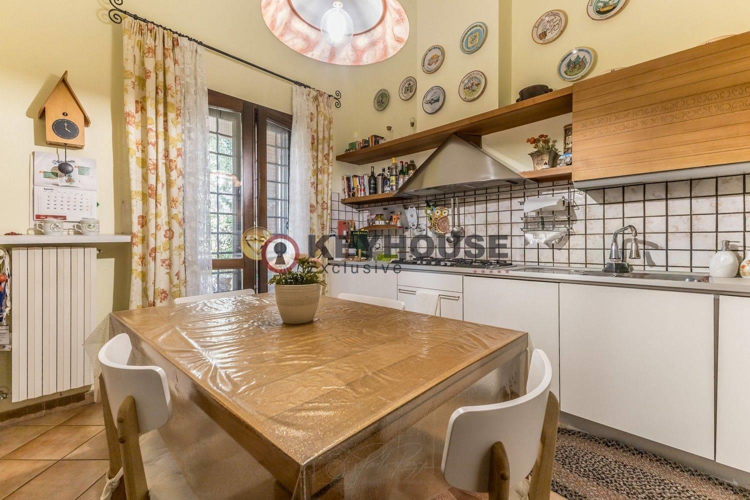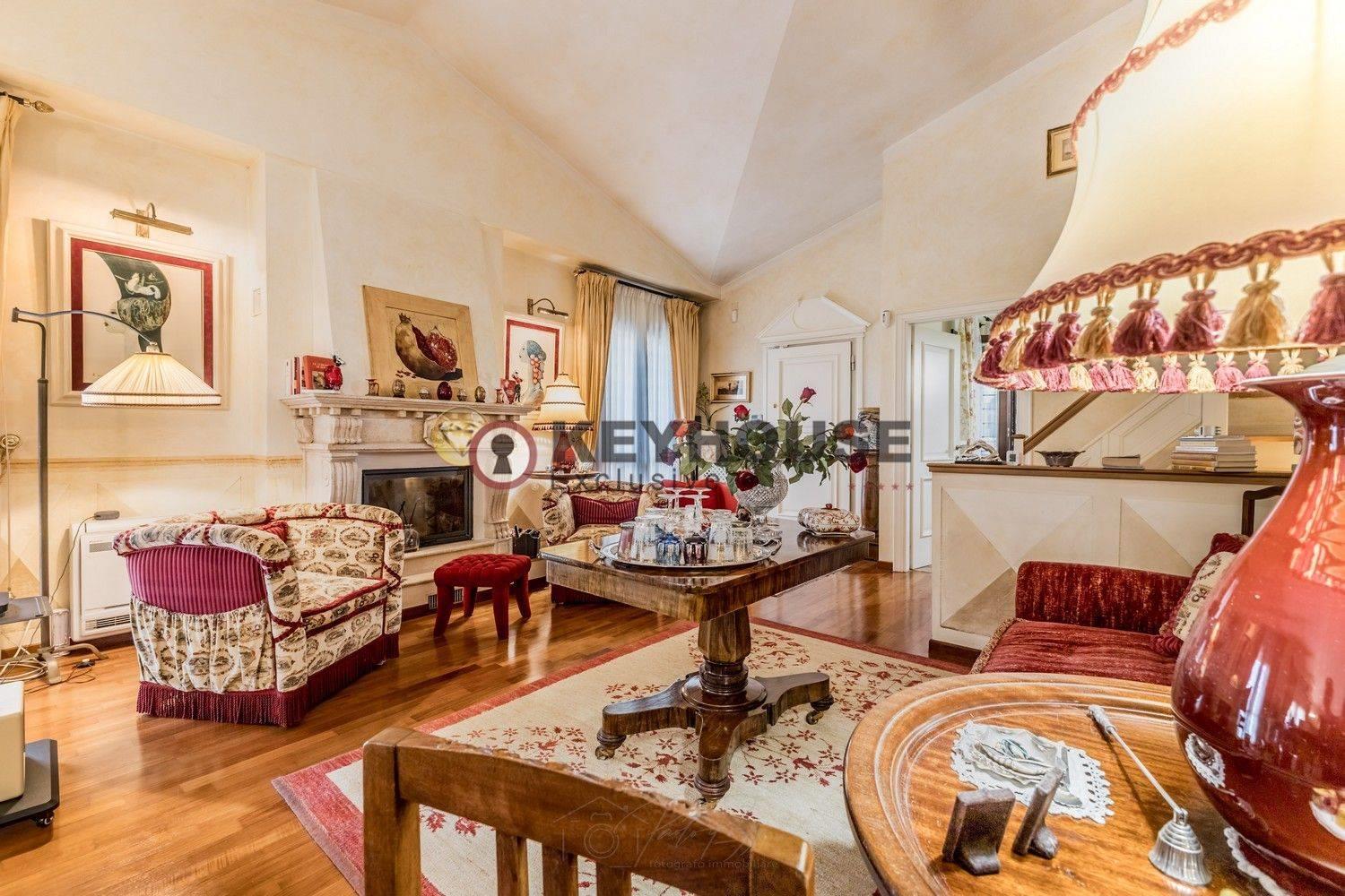 KEYHOUSE EXCLUSIVE ROME - VALLERANO: In one of the most sought-after areas of South-West Rome, we offer for sale a prestigious, energy-class A1 semi-detached villa on Via Marilyn Monroe, in an elegant, quiet residential area conveniently located near the EUR district, Laurentina, and the GRA ring road. The villa is spread over two levels, with an internal floor area of approximately 380 square meters. The ground floor comprises a charming reception room with a fireplace and hot air distribution, overlooking and giving access to the porch and well-kept garden, a spacious kitchen, two double bedrooms, a further bedroom/study, and two bathrooms. The lower ground floor, accessible via an internal staircase or a separate entrance, features a large living area, also with a fireplace, three bedrooms, a bathroom, a useful laundry room, and a storage room. The property sits at the center of a well-kept and livable garden, and thanks to its double east/west exposure, it ensures excellent internal brightness. It also features a photovoltaic system and a car charging station. The property enjoys a strategic location thanks to its connections to major roads, and is just minutes from schools, shops, and public transportation, making it ideal for those seeking tranquility from the chaos of the city without sacrificing the services and conveniences the city offers. € 950,000.00 (Ref. 31/25).