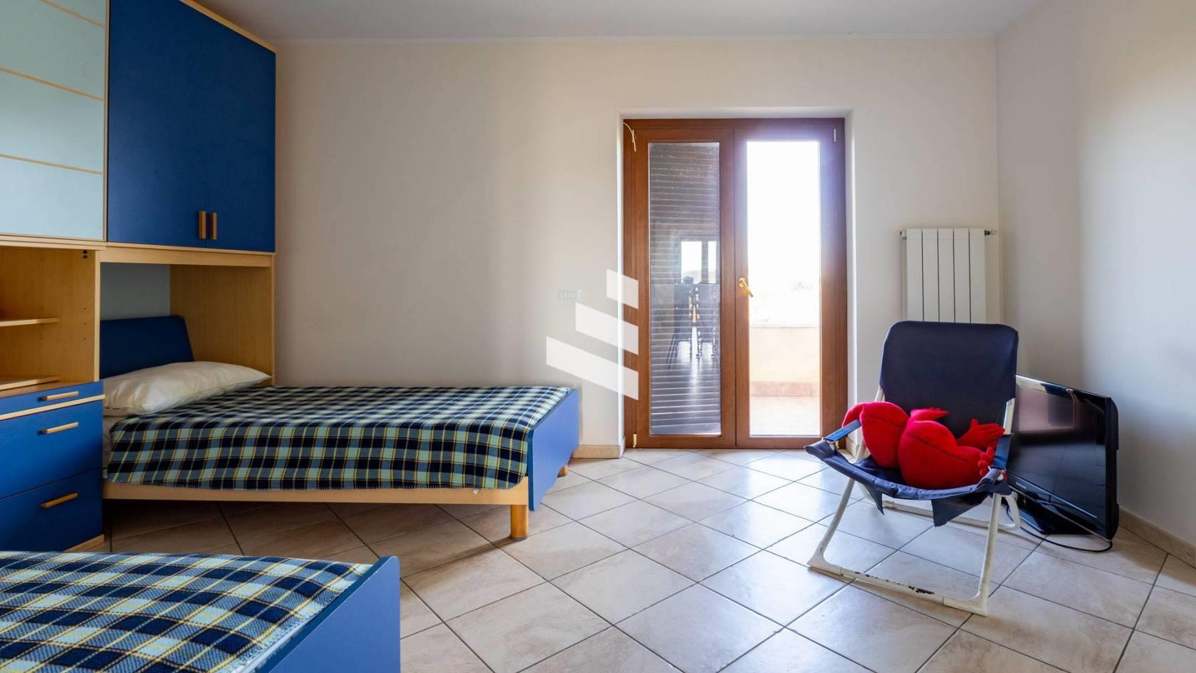 Dal piano superiore si accede al terrazzo con vista panoramica, uno spazio aggiuntivo perfetto da vivere durante la bella stagione.