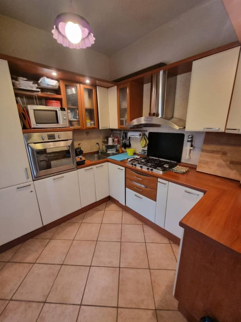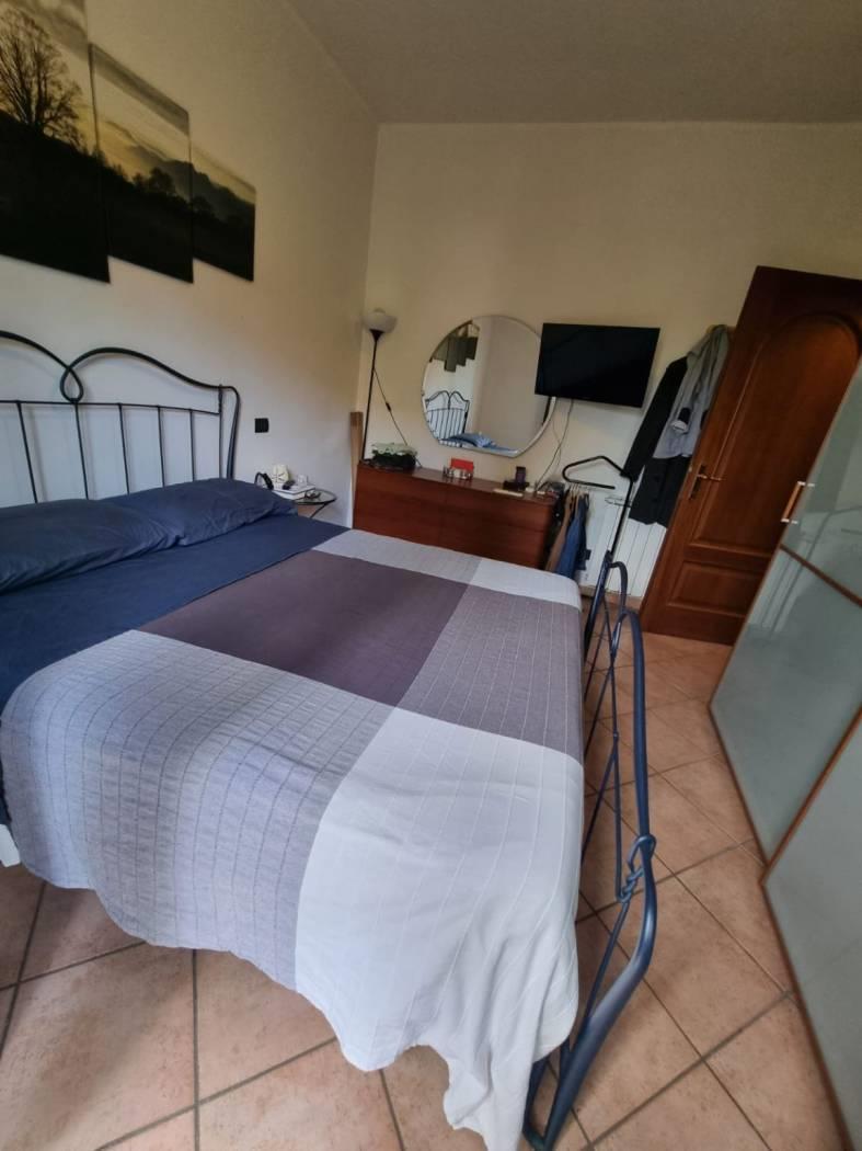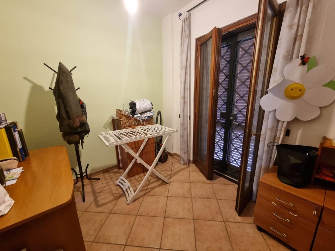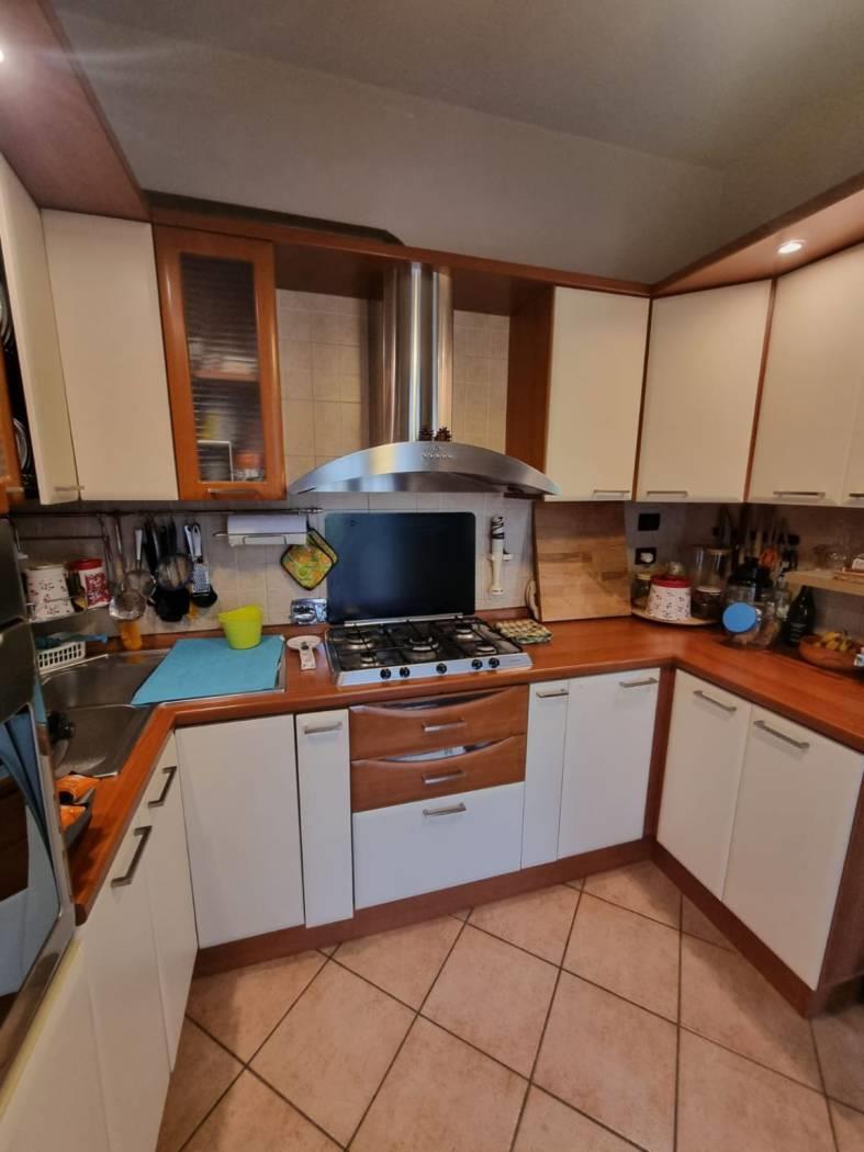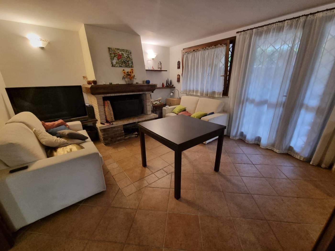 La villa si trova in un tranquillo complesso privato senza condominio e costituisce una parte di una bifamiliare con doppio ingresso. Al piano rialzato, si trovano un ampio salone, una cucina abitabile, una camera, una cameretta, un bagno e un patio angolare. Al piano mansardato, vi sono una ulteriore camera, una cameretta, un bagno e un piccolo solarium. Il piano semi-interrato, accessibile sia dall'esterno che dall'interno, attualmente ospita un ampio salone triplo con cucina a vista, soggiorno, bagno e un terrazzino privato; facilmente trasformabile in una camera e uno studio. Gli infissi sono in legno naturale con vetro doppio, zanzariere e inferriate. Completano la proprietà un giardino curato con varie piante. L'accesso alla proprietà avviene tramite un vialetto pedonale e un viale carrabile con cancello automatico.
