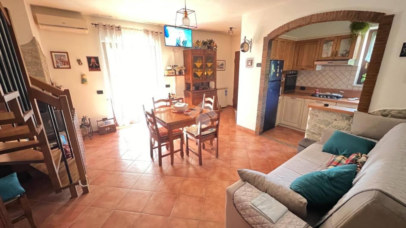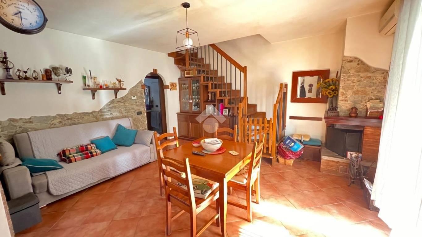 La proprietà, luminosa e in ottime condizioni, si sviluppa su due livelli per una superficie di circa 120 mq, offrendo ambienti accoglienti e ben distribuiti. Al piano terra si viene accolti da un ampio soggiorno con camino, cuore caldo della casa e perfetto per trascorrere piacevoli serate in famiglia, affiancato da una cucina a vista che rende l’ambiente conviviale e moderno. Sullo stesso livello trovano spazio una camera matrimoniale, un bagno e un grazioso portico, ideale per colazioni all’aperto, momenti di relax o cene estive.