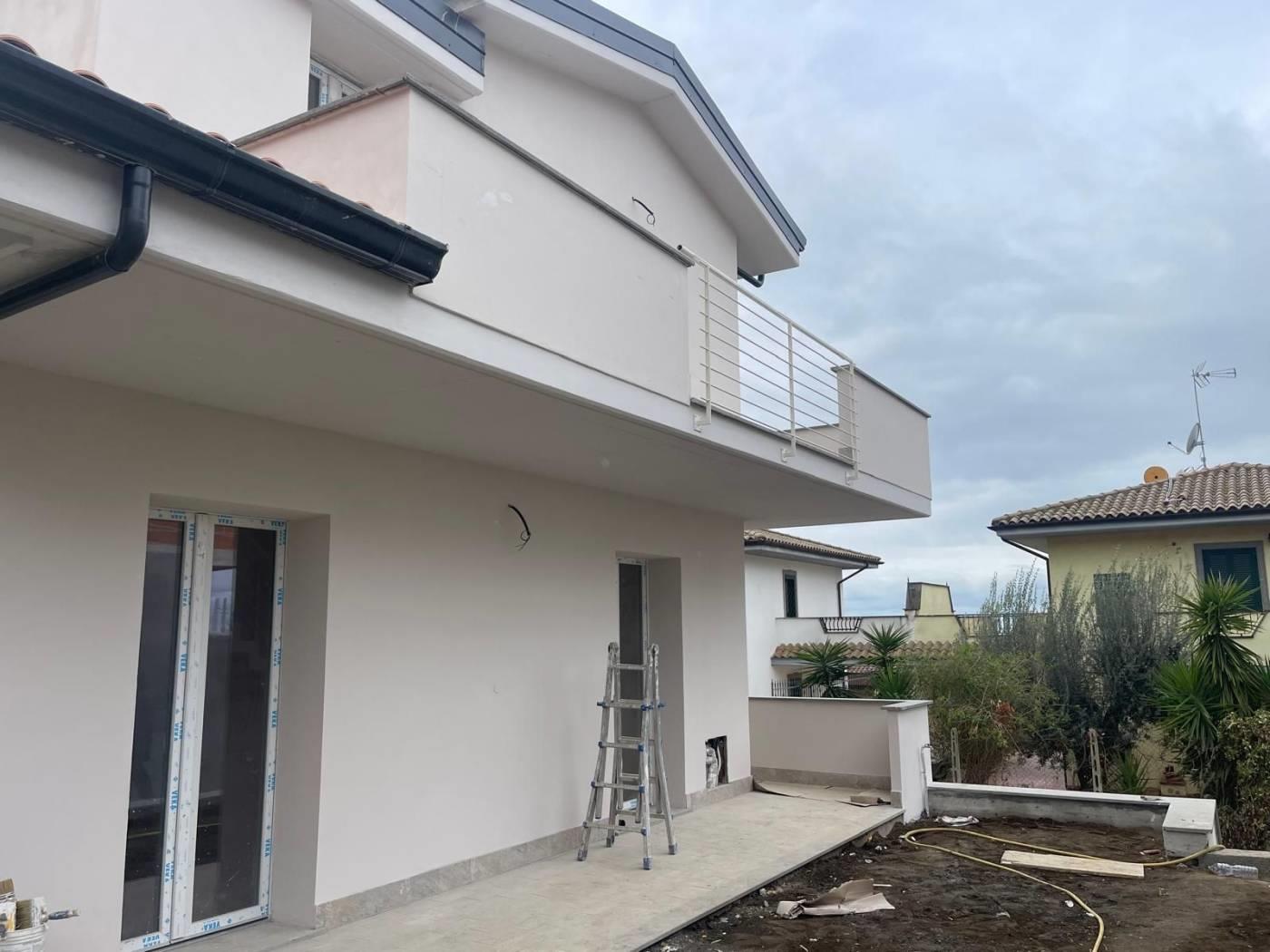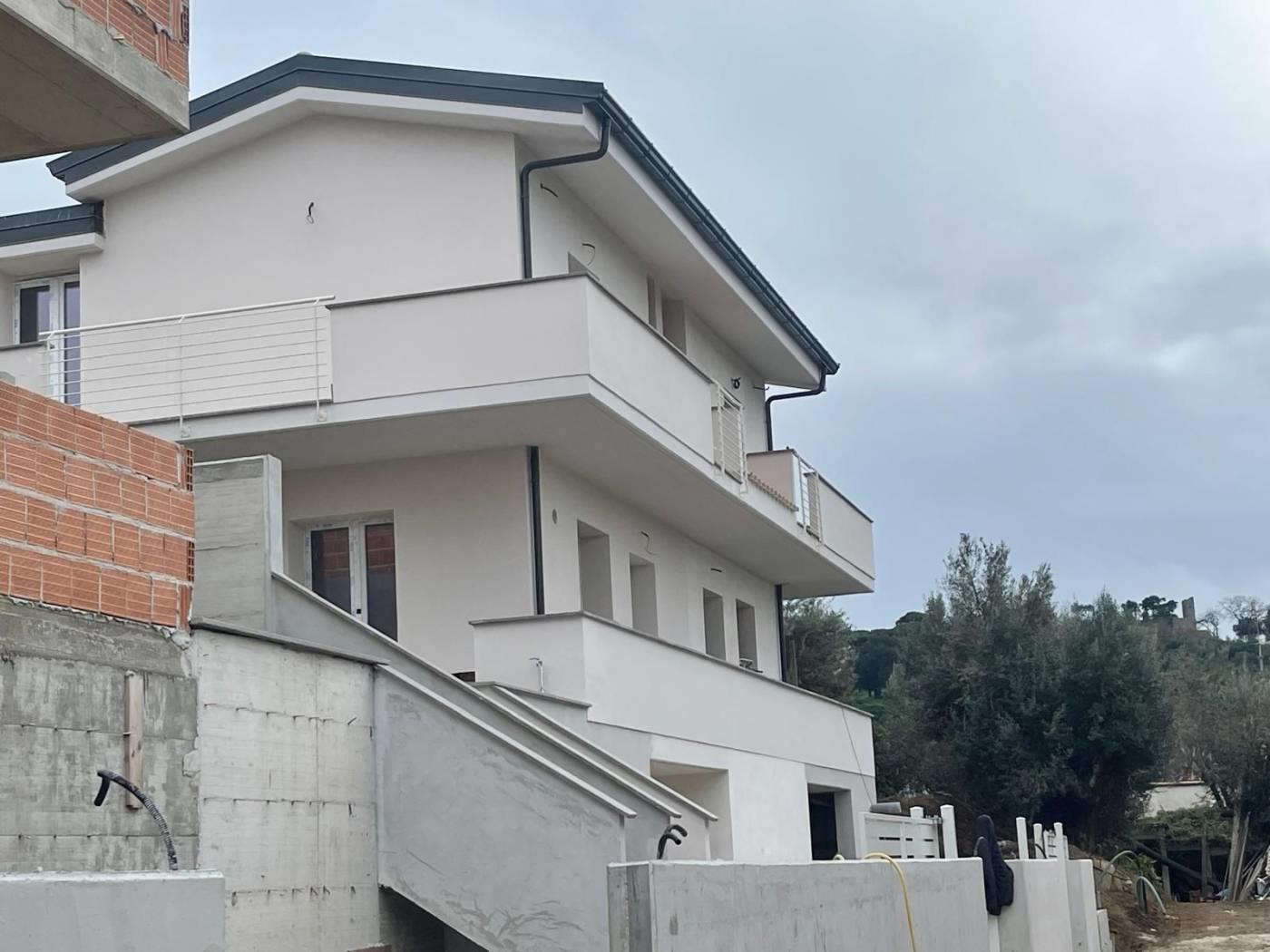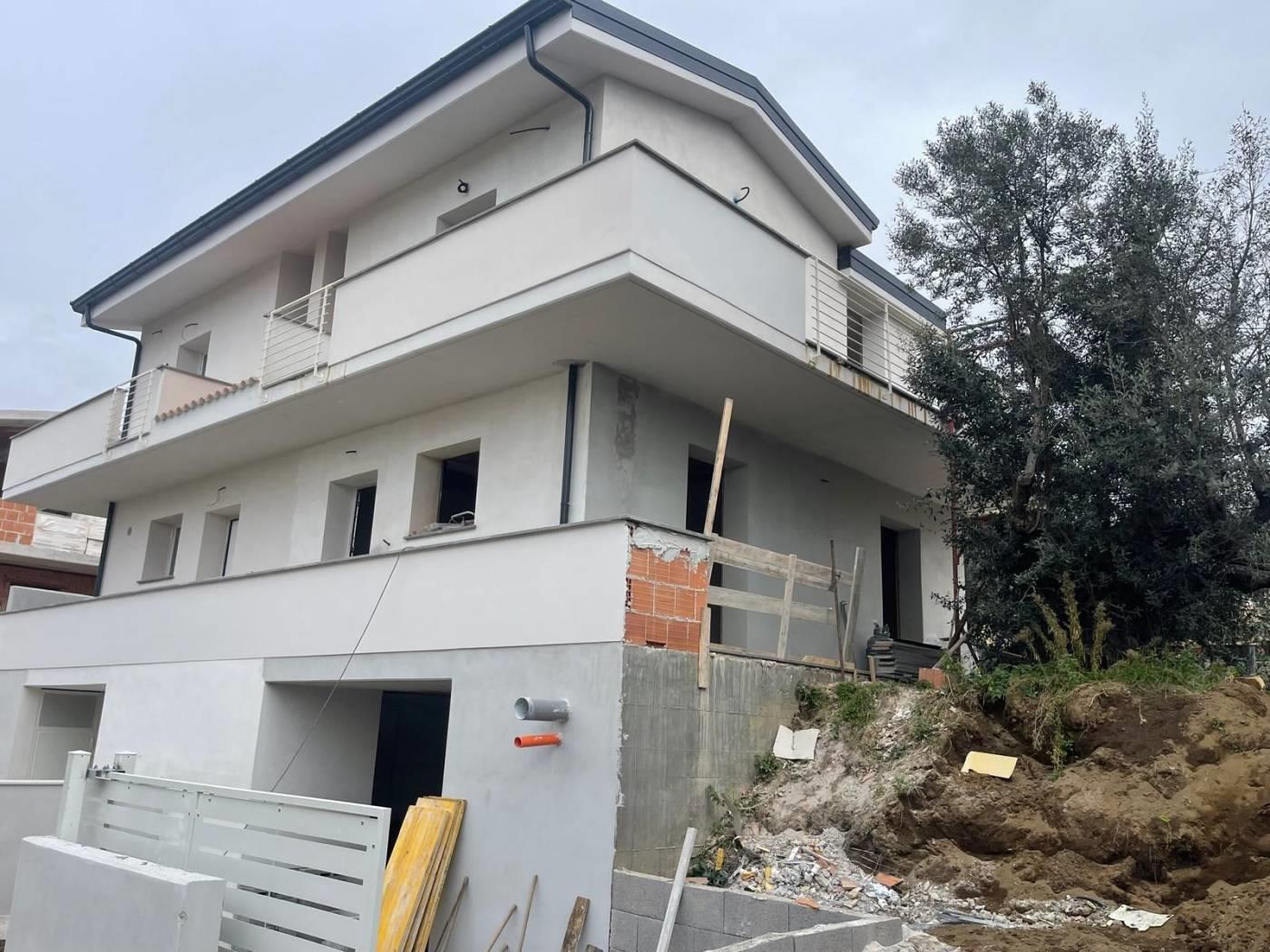 Proponiamo la vendita di un' ULTIMA DISPONIBILITA' in un nuovo complesso immobiliare composto da 4 ville in bifamiliare. La villa si sviluppa su 3 livelli con un piano semi interrato di circa 60 mq con accesso diretto dalla strada privata e collegato internamente al piano superiore con scala in muratura, al piano terra rialzato troviamo un soggiorno con angolo cottura e bagno, su questo livello è possibile ricavare una cameretta. Il piano terra ha accesso ad un giardino privato di circa 150 mq disposto su 3 lati, al piano superiore con accesso da scala interna in muratura troviamo la camera matrimoniale con uscita su un balcone angolare dal quale si può godere di un panorama verso il mare, una stanza multiuso da poter adibire a cameretta e un lavatoio. La villa sarà costruita con materiali di pregio a scelta dell'acquirente e disporrà di impianto fotovoltaico per un kw di potenza e produzione acqua calda. La sua posizione la rende ottimale per chi vuole avere la tranquillità di una zona residenziale senza rinunciare alla vicinanza al centro abitato e di conseguenza a tutti i principali servizi. E' possibile fissare un appuntamento sul posto per considerarne la posizione ed avere tutte le informazioni necessarie.