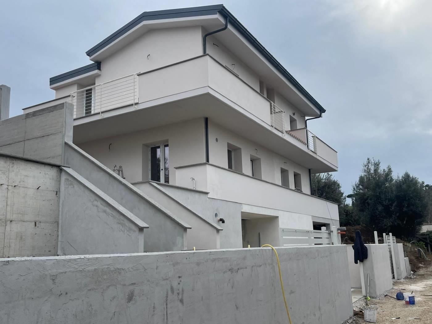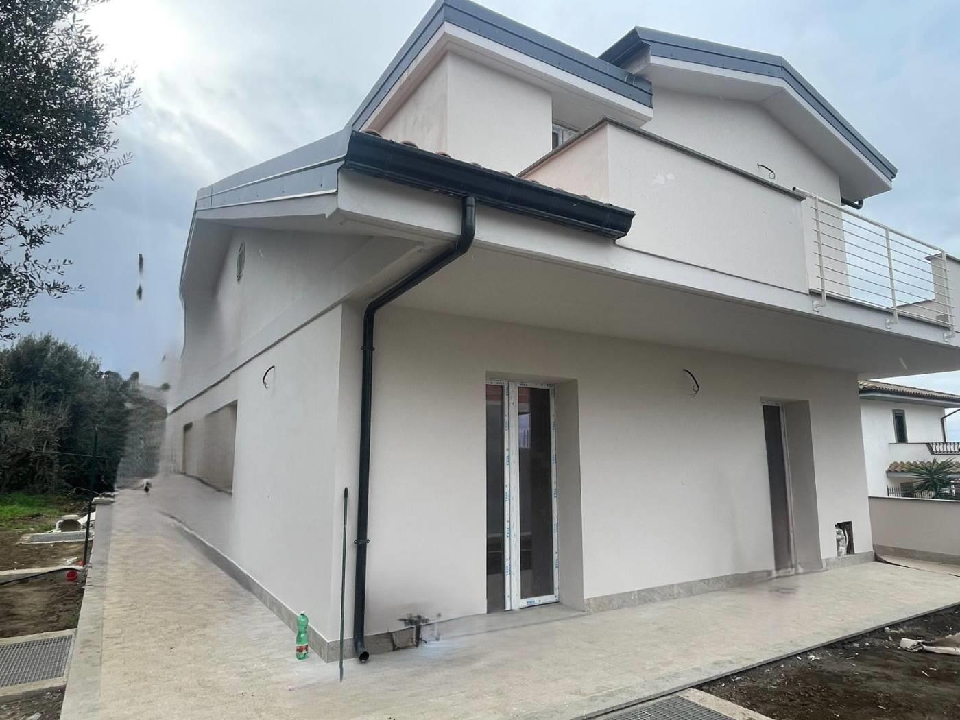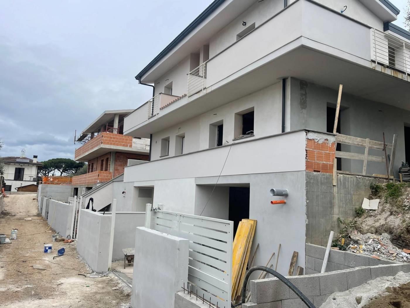 Proponiamo la vendita di un' ULTIMA DISPONIBILITA' in un nuovo complesso immobiliare composto da 4 ville in bifamiliare. La villa si sviluppa su 3 livelli con un piano semi interrato di circa 60 mq con accesso diretto dalla strada privata e collegato internamente al piano superiore con scala in muratura, al piano terra rialzato troviamo un soggiorno con angolo cottura e bagno, su questo livello è possibile ricavare una cameretta. Il piano terra ha accesso ad un giardino privato di circa 150 mq disposto su 3 lati, al piano superiore con accesso da scala interna in muratura troviamo la camera matrimoniale con uscita su un balcone angolare dal quale si può godere di un panorama verso il mare, una stanza multiuso da poter adibire a cameretta e un lavatoio. La villa sarà costruita con materiali di pregio a scelta dell'acquirente e disporrà di impianto fotovoltaico per un kw di potenza e produzione acqua calda. La sua posizione la rende ottimale per chi vuole avere la tranquillità di una zona residenziale senza rinunciare alla vicinanza al centro abitato e di conseguenza a tutti i principali servizi. E' possibile fissare un appuntamento sul posto per considerarne la posizione ed avere tutte le informazioni necessarie.
