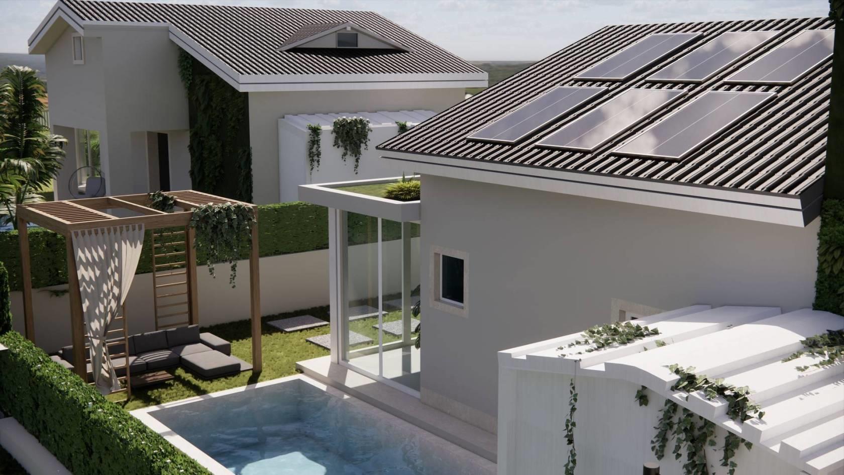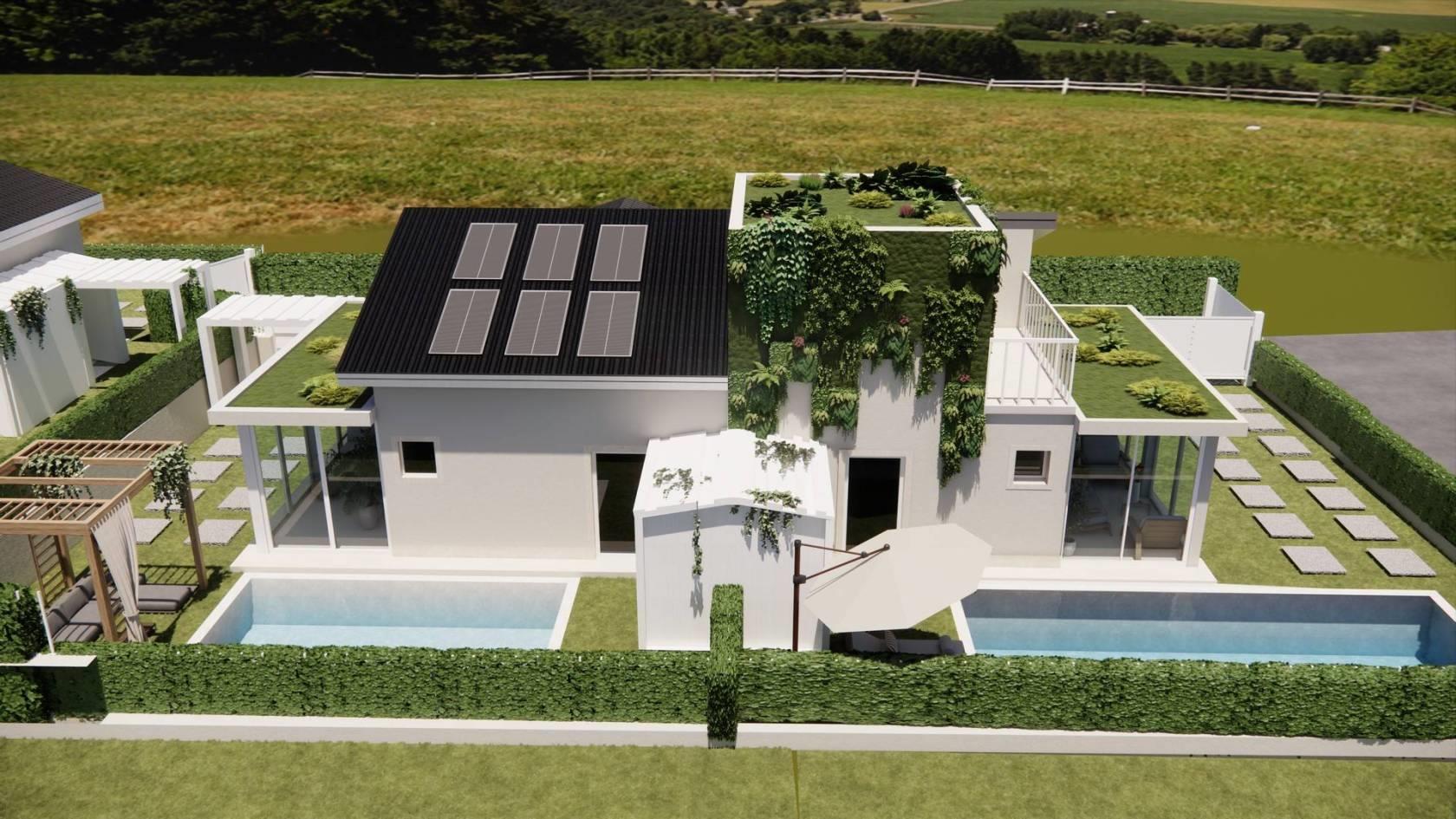 Si aprono le prenotazioni per il Nuovo Complesso Residenziale, composto da una Villa Unifamiliare e da due Ville in Bifamiliare. Le Ville Bifamiliari saranno costruite in "Classe A4" ed avranno, impianto fotovoltaico 3 KW (poss.tà di ampliamento e di batteria di accumulo), bellissime serre bioclimatiche, portici, giardini e piscina esclusiva, sono cosi composte: