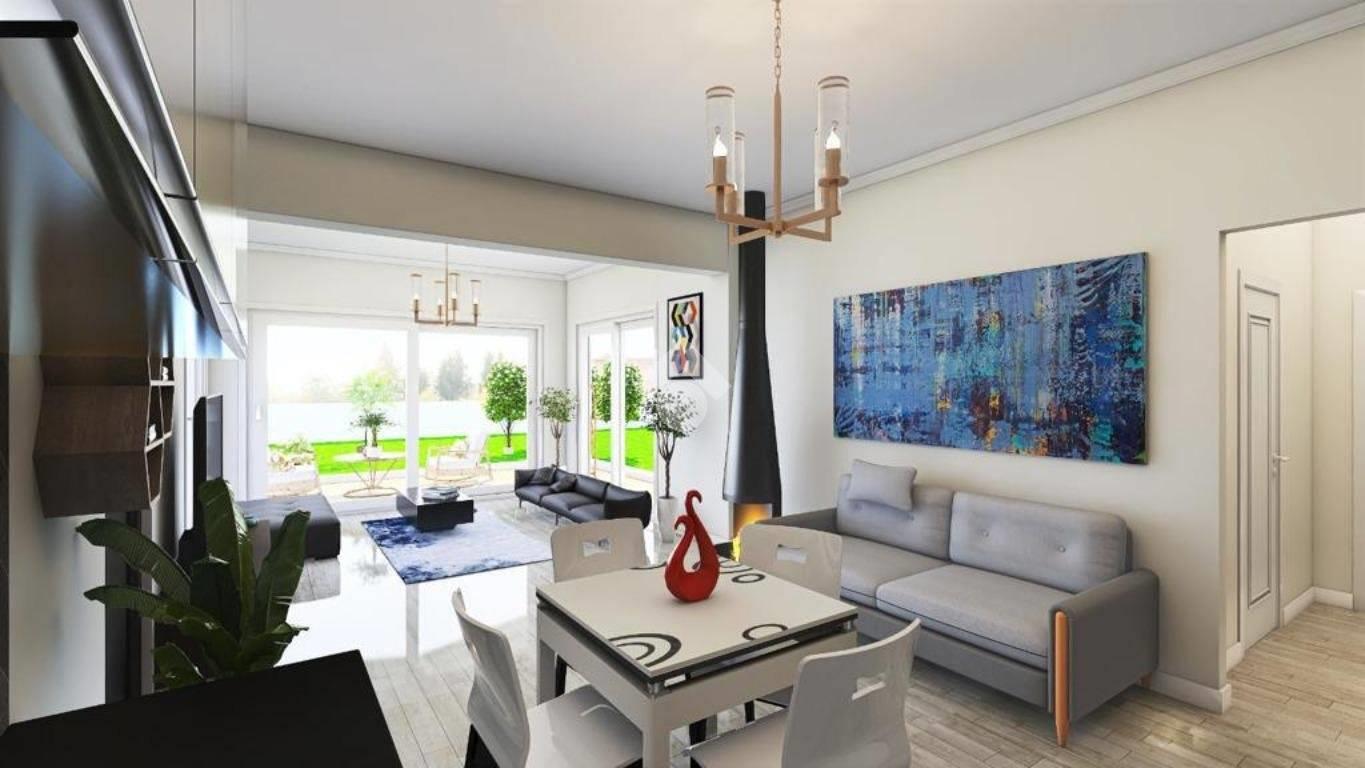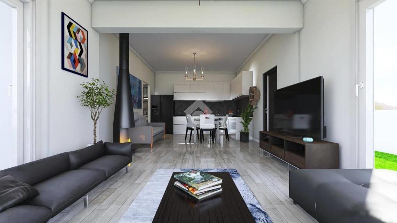 Gli ambienti interni, ampi ed illuminati sono studiati per garantire un elevato benessere abitativo e confort. La zona giorno si apre su un salone open space con cucina a vista, uno spazio accogliente e armonioso ideale per ricevere e vivere la casa in ogni momento. La zona notte comprende due camere da letto, di cui una con cabina armadio, oltre a doppi servizi realizzati con materiali di qualità. Completano la proprietà un elegante portico e un giardino privato, pensati per offrire privacy e relax, creando così una perfetta continuità tra spazi interni ed esterni.