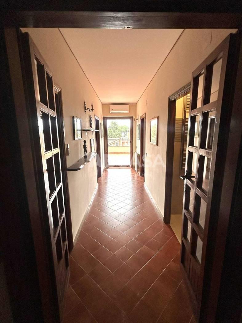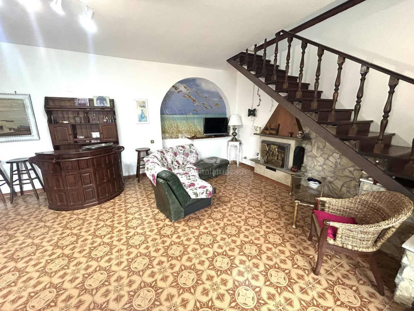 L’immobile si compone al piano terra da un salone con camino, con uscita su un ampio terrazzo di 16 mq, cucina abitabile e un bagno con doccia, mentre al primo piano troviamo quattro camere da letto matrimoniali, un bagno con box doccia e un terrazzo panoramico di 40 mq.