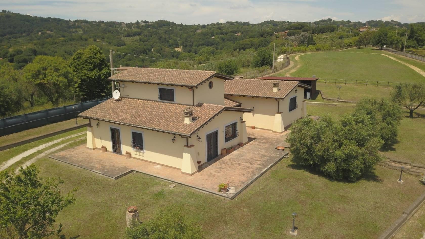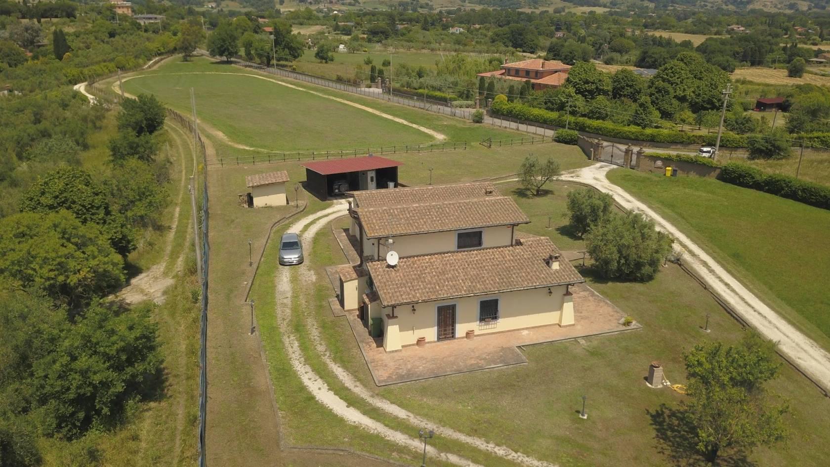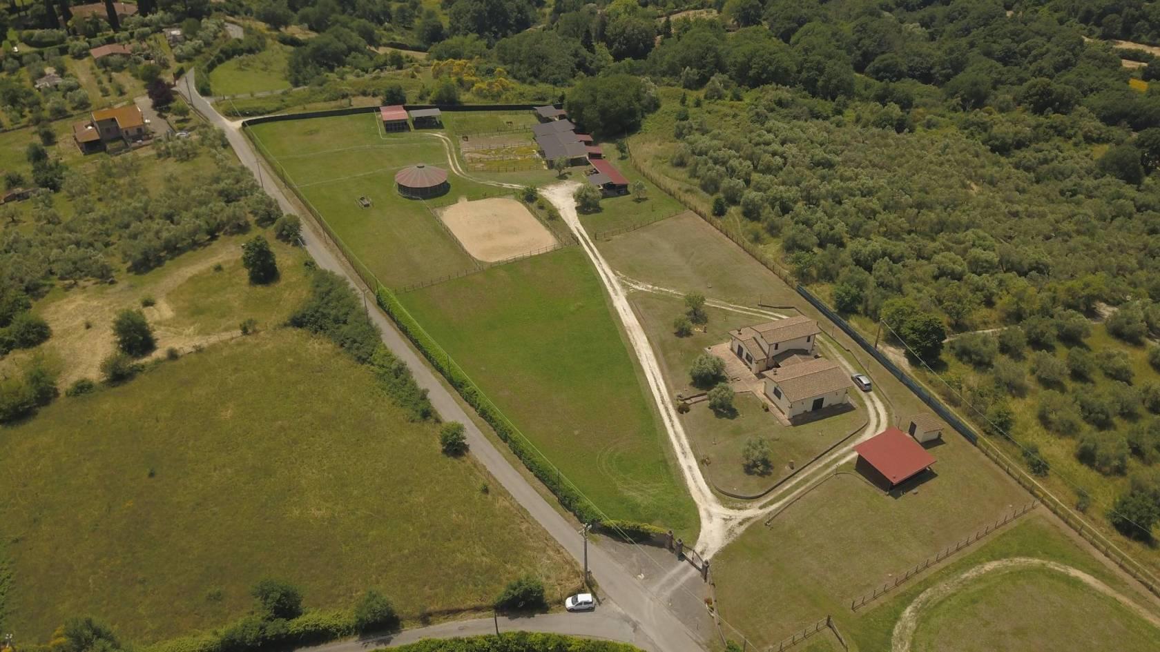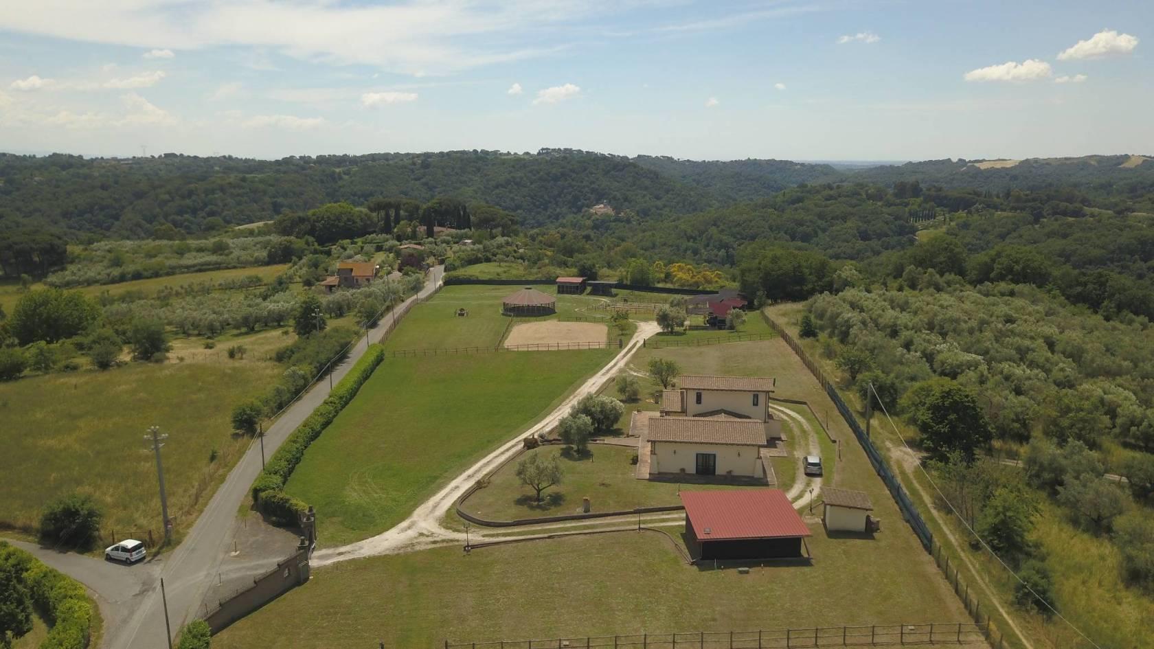 Proponiamo in vendita splendida proprietà immobiliare sita nel Comune di Campagnano, al confine con quello di Sacrofano. Parliamo di una bellissimo complesso residenziale ideale per chi nutre la passione dei cavalli. Il costruito sorge in un area unica, su di un terreno che si estende in piano per c.ca 3 Ha con un bellissimo panorama, grande riservatezza e tranquillità. L'immobile principale è un villino su due livelli con soggiorno, cucina, bagno al piano terra; ed una camera con piccola cabina armadio e bagno al piano superiore. Tramite un ampio portico la struttura si collega ad un ampia zona sempre al piano terra, attualmente utilizzata come salone di rappresentanza con bagno, ma in cui è possibile realizzare altre camere. troviamo inoltre un ampia tettoria a rimessa auto. A completare la proprietà tutto quel che concerne la passione per il mondo equino; abbiamo infatti il campo, un tondino coperto, dei box.