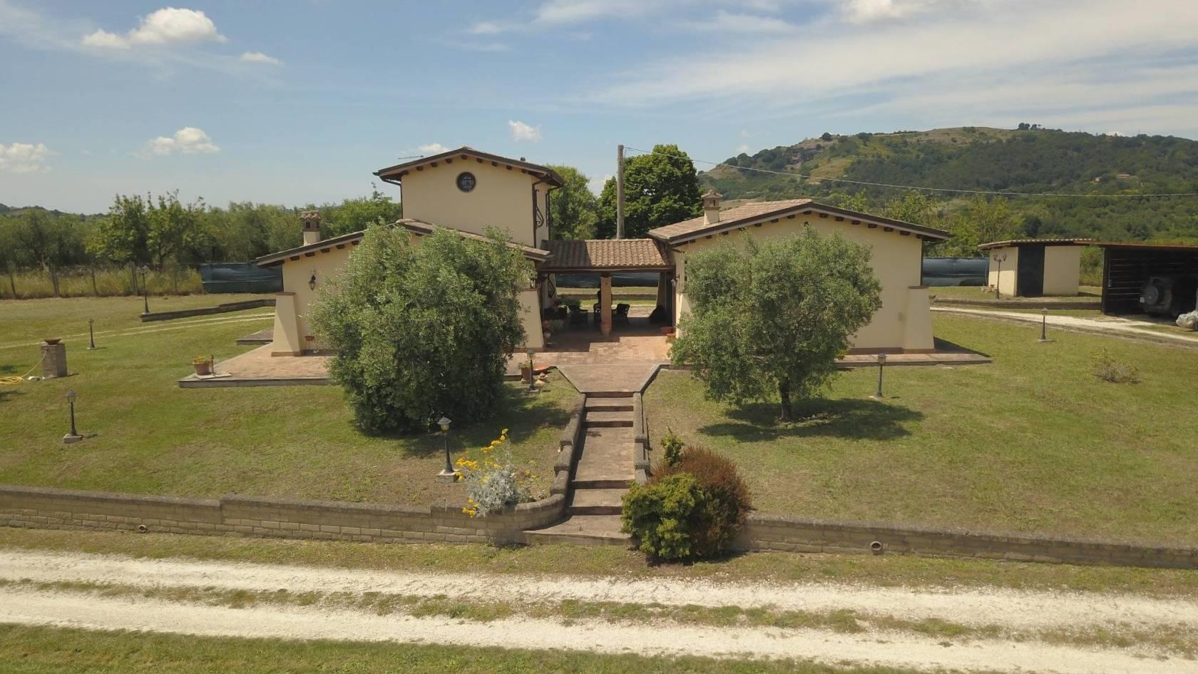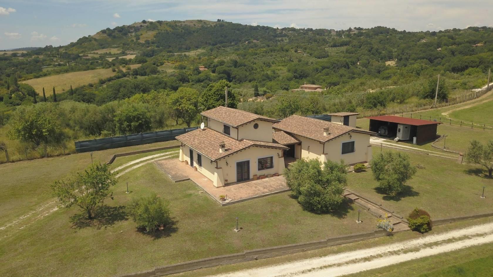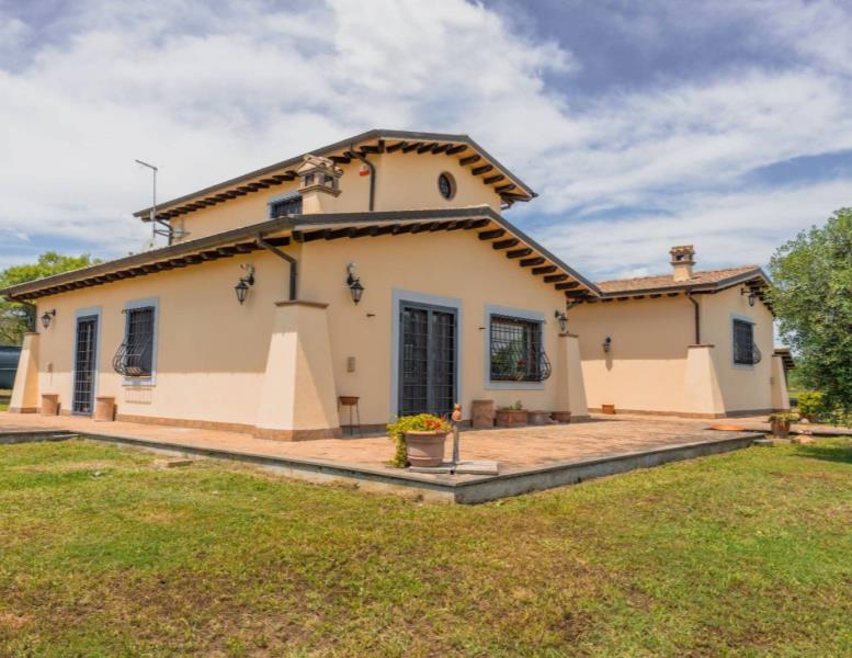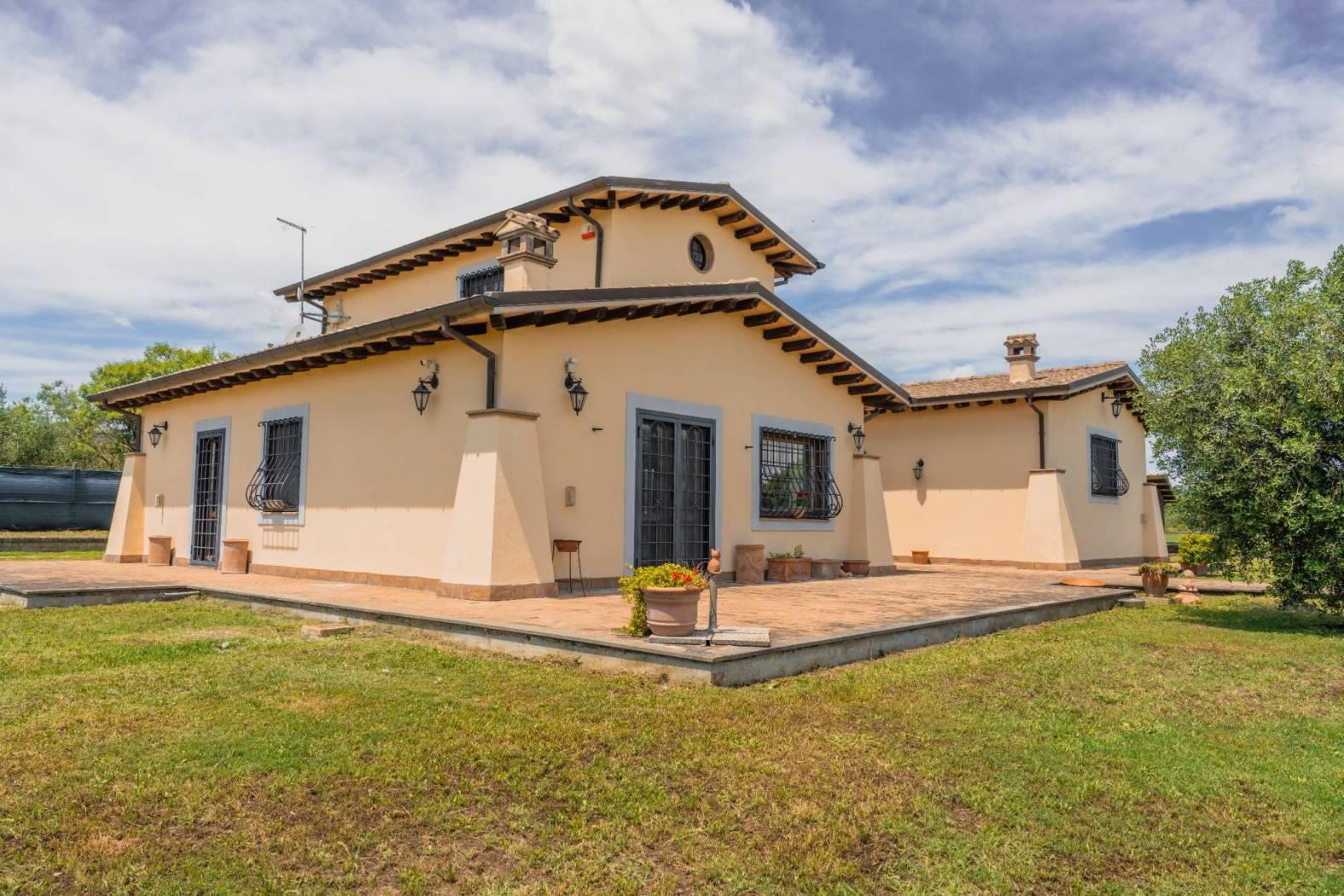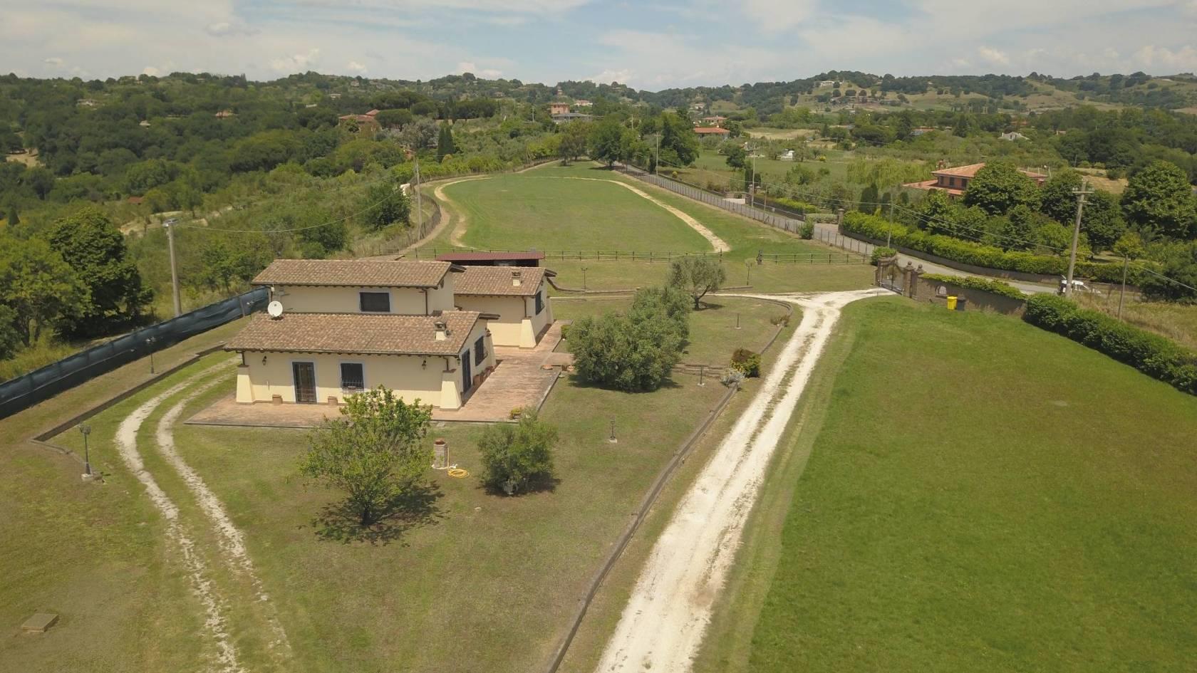 Proponiamo in vendita splendida proprietà immobiliare sita nel Comune di Campagnano, al confine con quello di Sacrofano. Parliamo di una bellissimo complesso residenziale ideale per chi nutre la passione dei cavalli. Il costruito sorge in un area unica, su di un terreno che si estende in piano per c.ca 3 Ha con un bellissimo panorama, grande riservatezza e tranquillità. L'immobile principale è un villino su due livelli con soggiorno, cucina, bagno al piano terra; ed una camera con piccola cabina armadio e bagno al piano superiore. Tramite un ampio portico la struttura si collega ad un ampia zona sempre al piano terra, attualmente utilizzata come salone di rappresentanza con bagno, ma in cui è possibile realizzare altre camere. troviamo inoltre un ampia tettoria a rimessa auto. A completare la proprietà tutto quel che concerne la passione per il mondo equino; abbiamo infatti il campo, un tondino coperto, dei box.