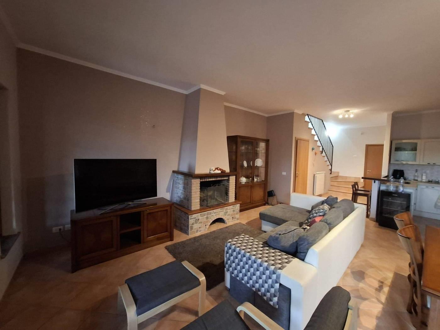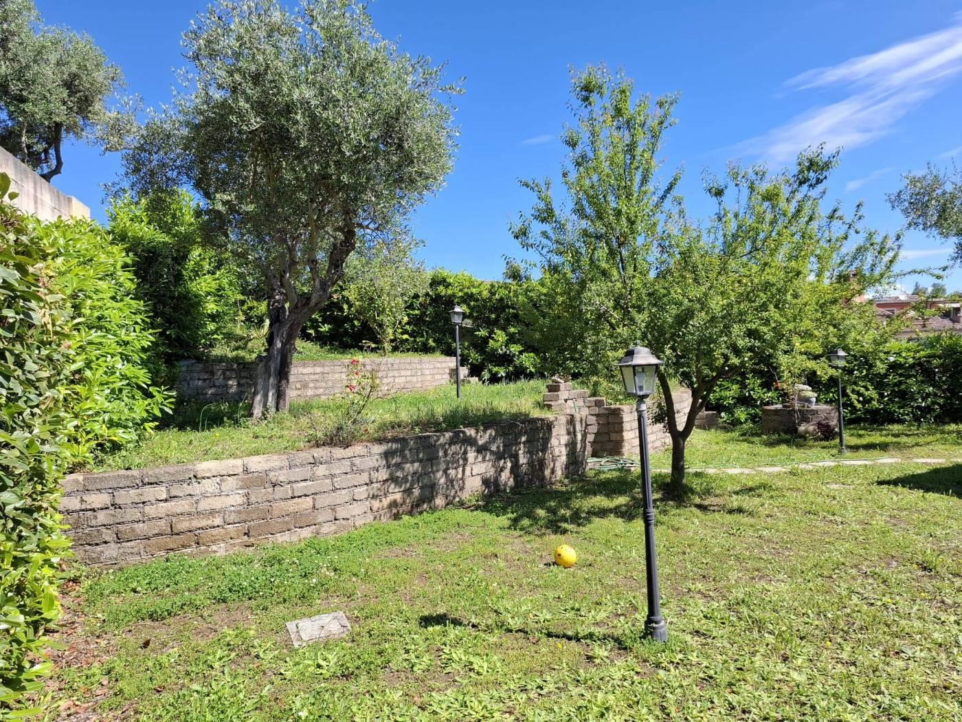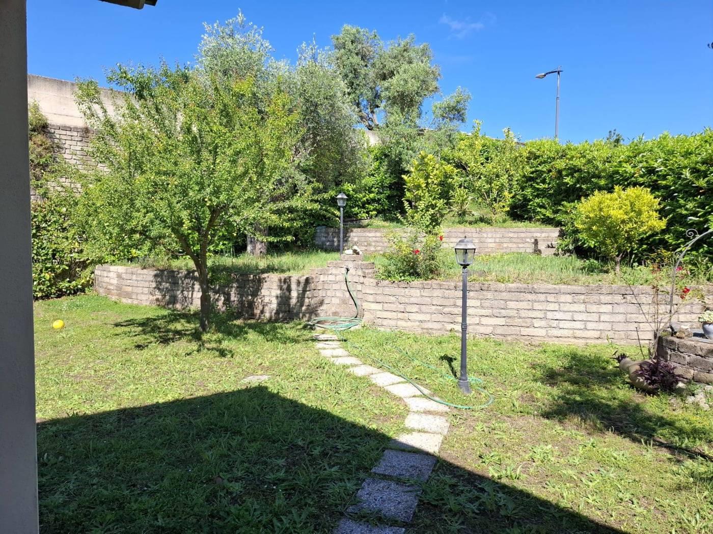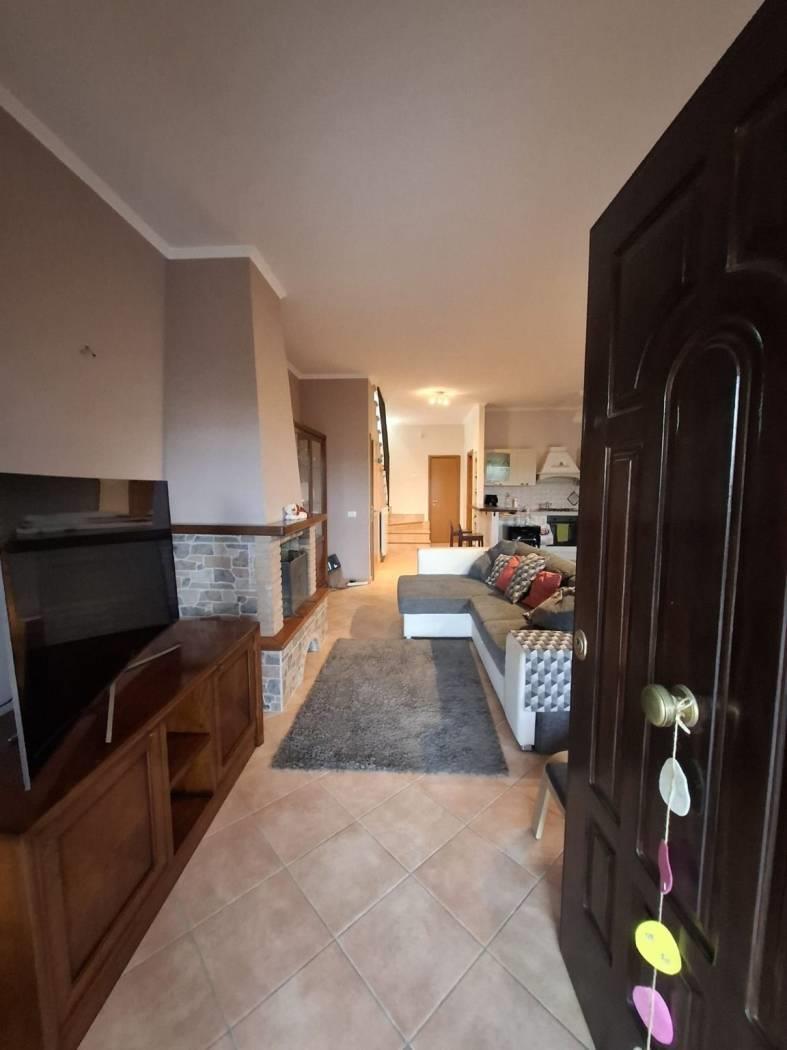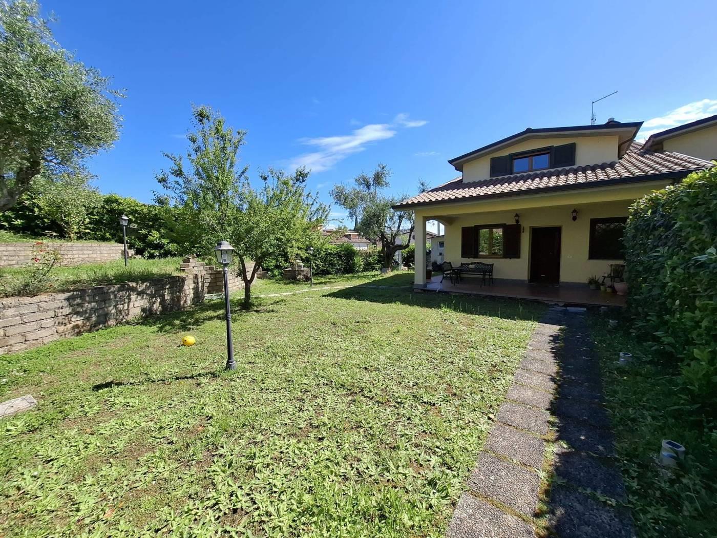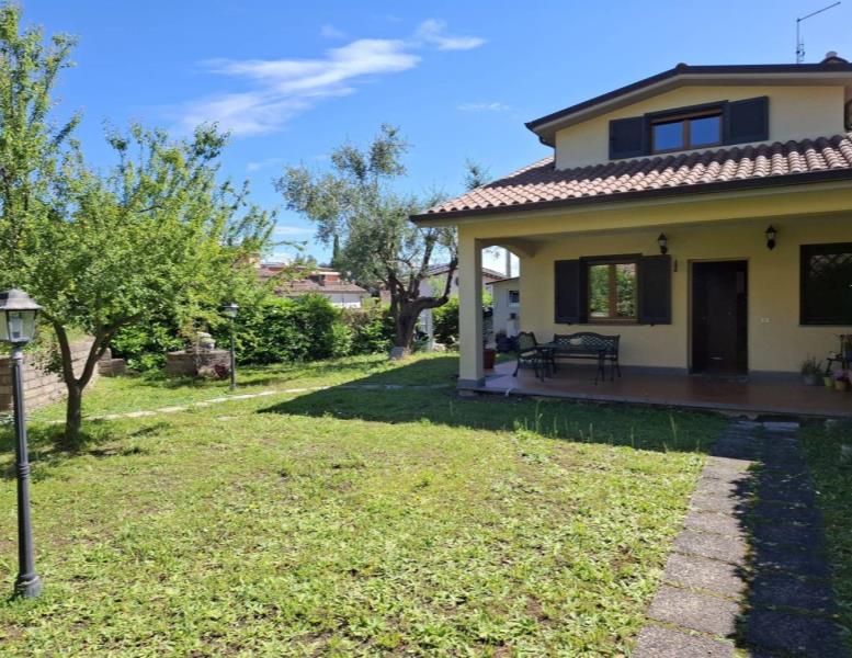 Proponiamo in vendita a Riano (RM) un grazioso villino su tre livelli di circa 135 mq interni con oltre 230mq di giardino privato, composto da ampio e luminoso living impreziosito da un grande camino, con zona pranzo, zona salotto bagno e una comoda cucina; al piano superiore troviamo una camera da letto matrimoniale con bagno con vasca idromassaggio che affaccia su un portico, si ha poi una stanza che esce un altro portico dal quale si accede al meraviglioso giardino; salendo ancora nella zona sottotetto abbiamo una ulteriore stanza con armadio a muro, uno studio, un locale termico e un terrazzo. L'immobile è situato in zona residenziale poco distante dalla zona commerciale e servita del paese, a pochi chilometri dalla Via Flaminia, dalla Via Tiberina, dal casello autostradale dell' A1 di Castelnuovo di Porto e alla stazione della ferrovia Roma - Viterbo. La villa dispone di due accessi con portoni blindati, antifurto con sensore di movimento, infissi in legno e pvc con doppio vetro, persiane e grate blindate, zanzariere, riscaldamento a radiatori con caldaia a gas gpl e caldaia policombustibile (pellet, nocciolino etc), aria condizionata nelle tre camere da letto, vasca idromassaggio e pannelli solari per produzione acqua calda; esternamente è disponibile un ampio parcheggio per residenti e visitatori. Non è formalmente costituito un condominio ma c'è una spesa di circa 20€ mensili da sostenere in merito all'illuminazione perimetrale, al cancello elettrico all'ingresso e la pompa per le fognature. Importo di vendita TRATTABILE.