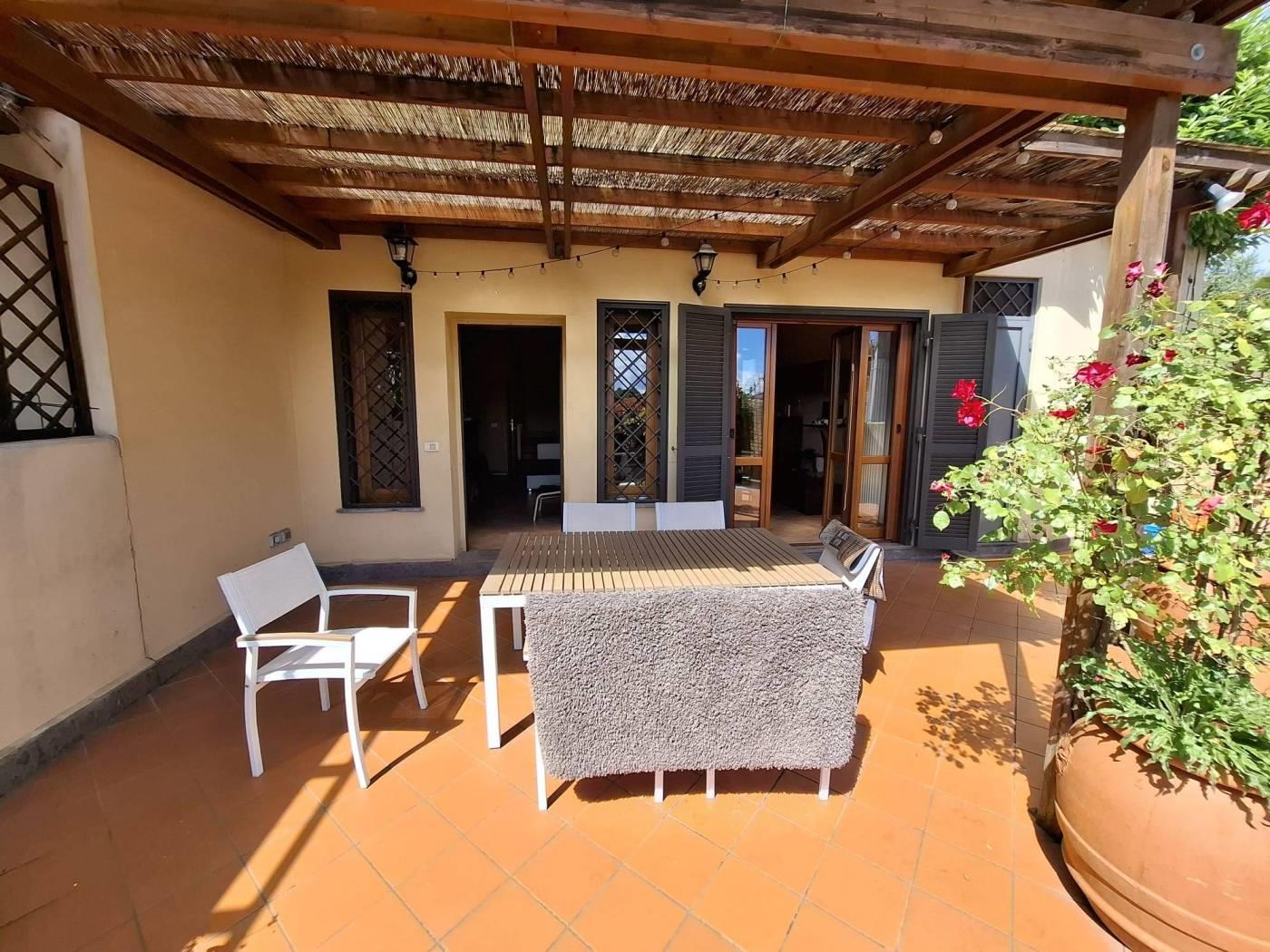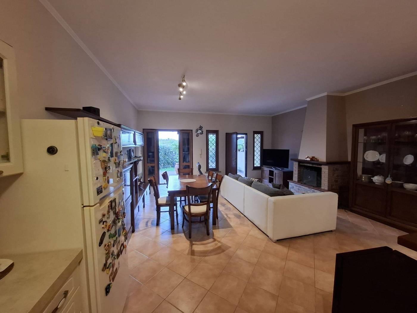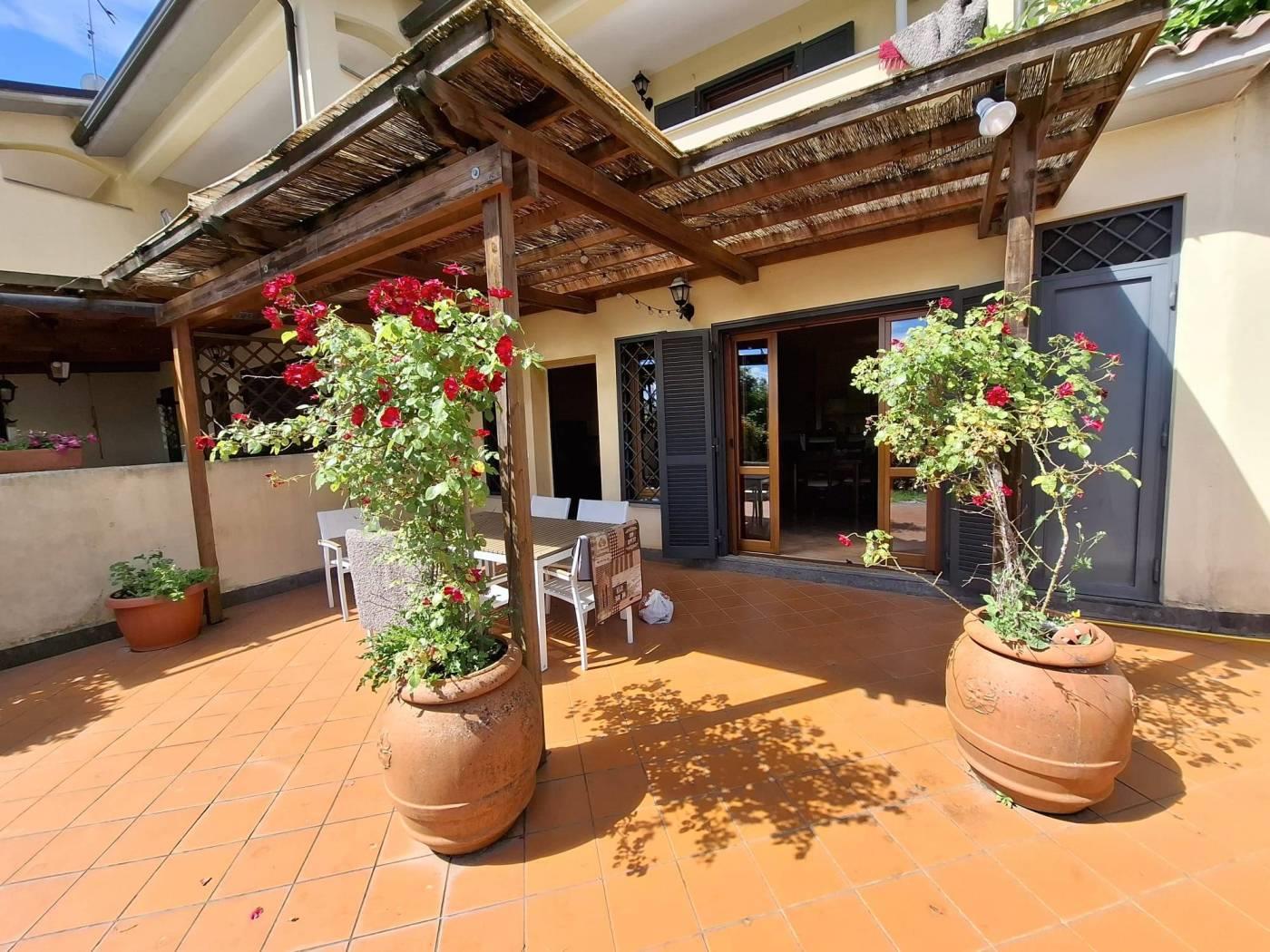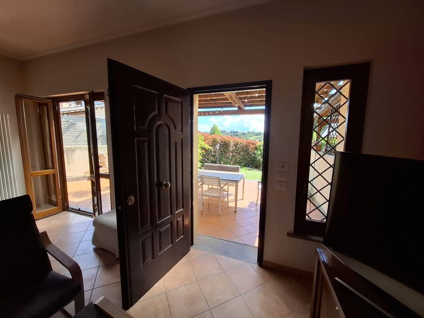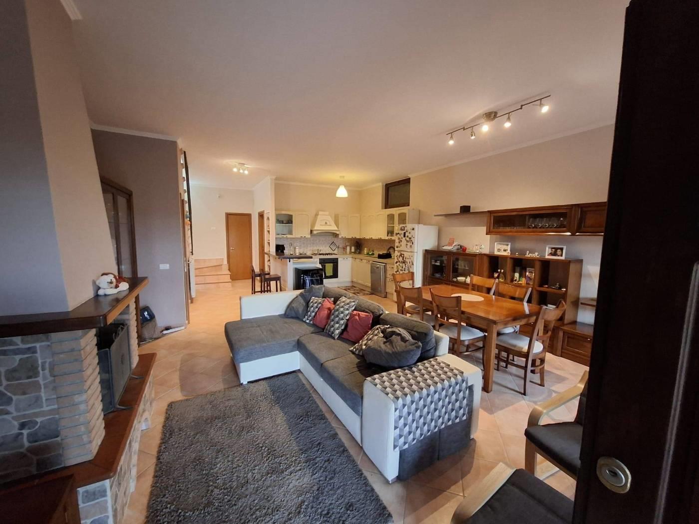 Proponiamo in vendita a Riano (RM) un grazioso villino su tre livelli di circa 135 mq interni con oltre 230mq di giardino privato, composto da ampio e luminoso living impreziosito da un grande camino, con zona pranzo, zona salotto bagno e una comoda cucina; al piano superiore troviamo una camera da letto matrimoniale con bagno con vasca idromassaggio che affaccia su un portico, si ha poi una stanza che esce un altro portico dal quale si accede al meraviglioso giardino; salendo ancora nella zona sottotetto abbiamo una ulteriore stanza con armadio a muro, uno studio, un locale termico e un terrazzo. L'immobile è situato in zona residenziale poco distante dalla zona commerciale e servita del paese, a pochi chilometri dalla Via Flaminia, dalla Via Tiberina, dal casello autostradale dell' A1 di Castelnuovo di Porto e alla stazione della ferrovia Roma - Viterbo. La villa dispone di due accessi con portoni blindati, antifurto con sensore di movimento, infissi in legno e pvc con doppio vetro, persiane e grate blindate, zanzariere, riscaldamento a radiatori con caldaia a gas gpl e caldaia policombustibile (pellet, nocciolino etc), aria condizionata nelle tre camere da letto, vasca idromassaggio e pannelli solari per produzione acqua calda; esternamente è disponibile un ampio parcheggio per residenti e visitatori. Non è formalmente costituito un condominio ma c'è una spesa di circa 20€ mensili da sostenere in merito all'illuminazione perimetrale, al cancello elettrico all'ingresso e la pompa per le fognature. Importo di vendita TRATTABILE.