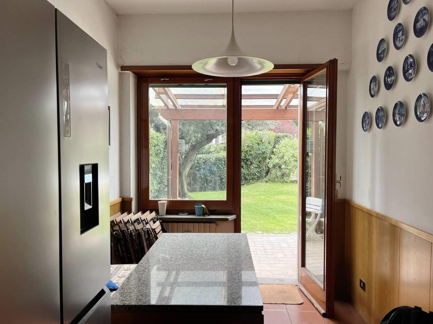 Mostacciano - in un contesto molto riservato e tranquillo, immerso nel verde - e più precisamente in Via Giovanni Gastaldi n. 41, proponiamo in vendita una villa in cortina di circa 190 mq con giardino privato di circa 500 mq e piscina (6mx12m). L'immobile si sviluppa su più livelli collegati tra loro da scale interne ed è così composto: il piano terra di circa 70 mq accoglie l'ingresso con il soggiorno a vista e grande apertura sul giardino, cucina abitabile ed un bagnetto; al primo piano invece di circa 40 mq troviamo la zona notte con due camere da letto di cui una con accesso ad un terrazzo di 22 mq ed un bagno; continuando a salire al secondo piano troviamo una terza camera da letto con accesso ad un balcone perimetrale, un bagno e ad un piccolo vano tecnico per la caldaia; scendendo invece al piano seminterrato, dal quale si può accedere sia dalle scale interne che da un ingresso esterno indipendente, troviamo il vano cantina di circa 65 mq composto da un salottino, due camerette e un locale lavanderia. Il giardino, dal quale si può entrare anche da un ingresso esterno, presenta oltre alla grande piscina una zona mattonata con tettoia e tenda da sole, un barbecue in muratura, una doccia esterna ed un locale tecnico. Nel suo complesso l'immobile si presenta molto luminoso grazie alla tripla esposizione, pavimentazione in cotto nella zona giorno e parquet nella zona notte, porta blindata, aria condizionata in tutti gli ambienti, inferriate e serrande blindate di cui alcune elettriche, sistema di allarme e telecamere, videocitofono e pannelli fotovoltaici personali, cancello carrabile elettrico. Completano la proprietà due posti auto coperti e un terzo scoperto.