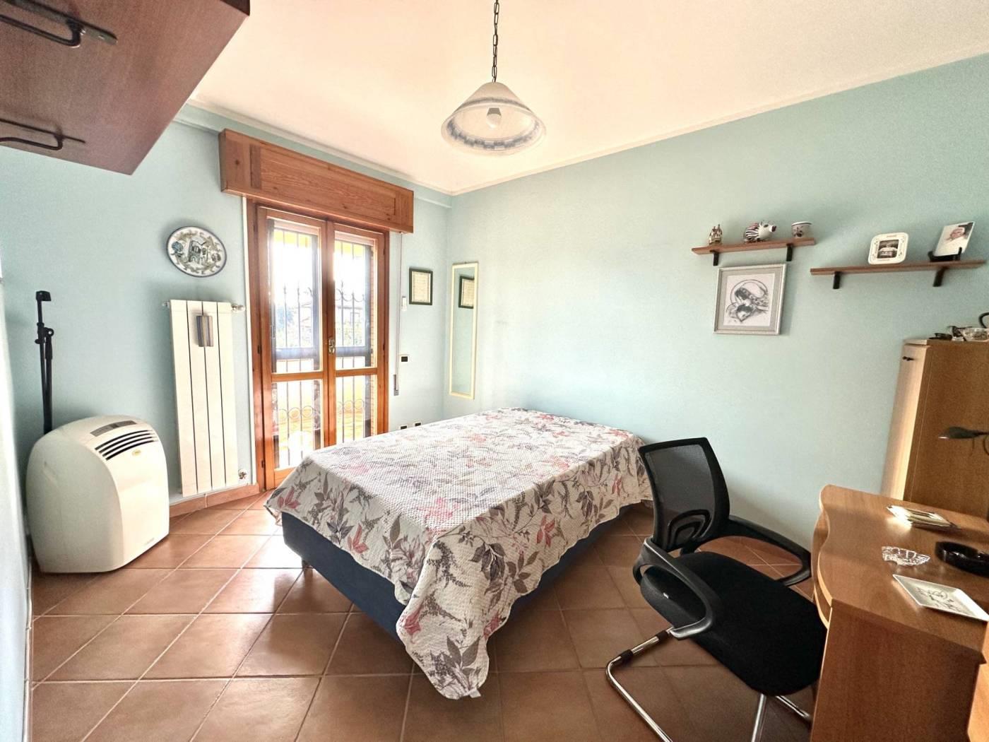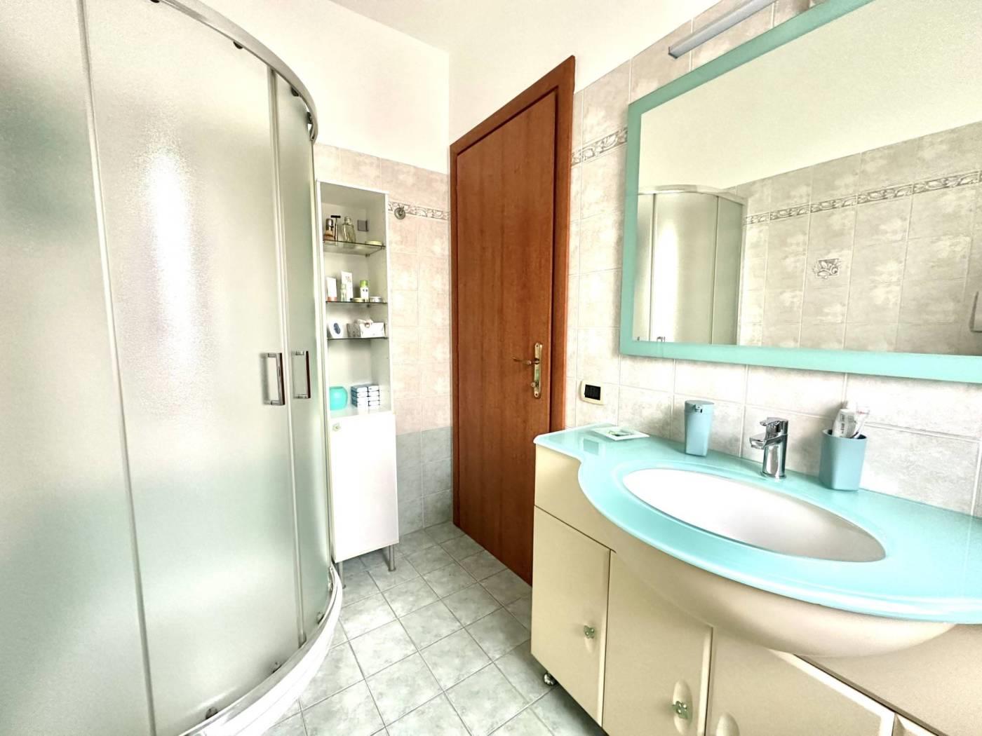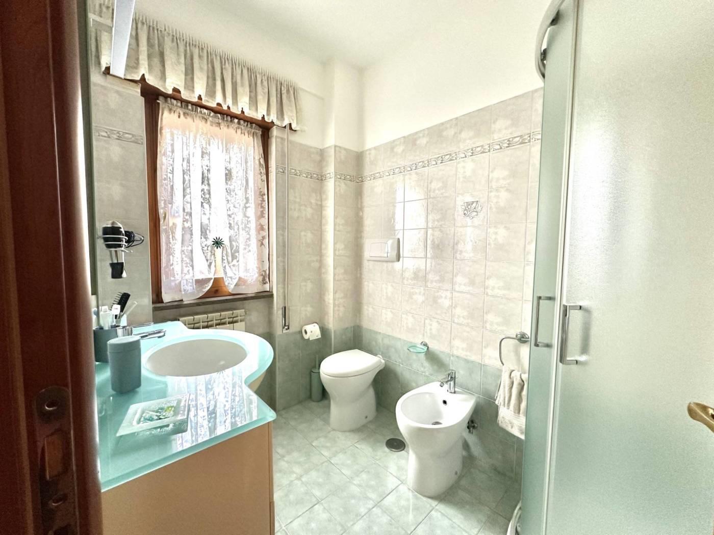 Piano Primo: Disimpegno, camera matrimoniale di 16 mq ca con balcone privato di 4 mq ca, cameretta di 13,5 mq ca e locale Pluriuso adibito a cabina armadio di 7 mq ca con finestra, entrambe con accesso al terrazzo di 17,5 mq ca, bagno padronale completamente ristrutturato con finestra ed ampia doccia.
