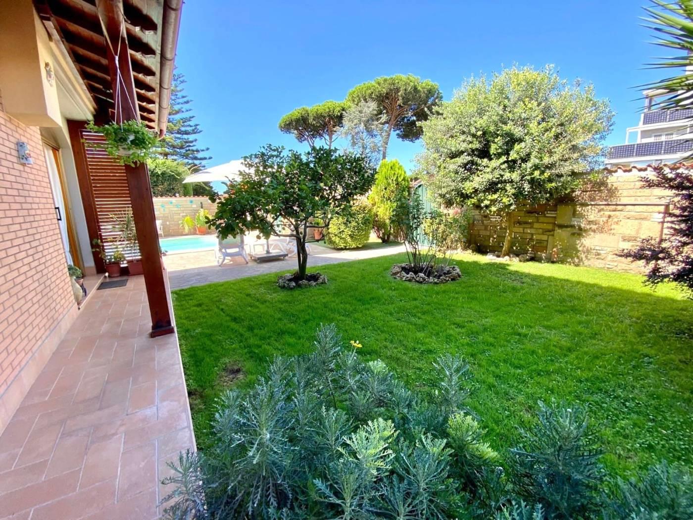 Esterno: ingresso carrabile e pedonale mattonato, giardino di 250 mq curatissimo con alberi di Limone, Yucca gigante, Rose e Siepi, in parte adibito ad area barbecue ideale per pranzi e cene all’aperto con gazebo zona lavandino e sgabuzzino ed in parte dedicato alla zona Relax con una splendida piscina interrata munita di idromassaggio ed un'area solarium attrezzata. Deposito esterno per attrezzatura da giardino.