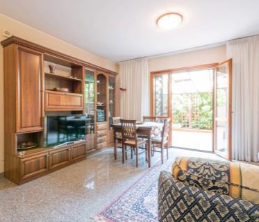 Il salone offre una splendida vista sul giardino, mentre la cucina semi-abitabile, di generosa metratura, ha accesso a un ulteriore grande giardino, con una corte terrazzata ideale per pranzi e cene all'aperto.