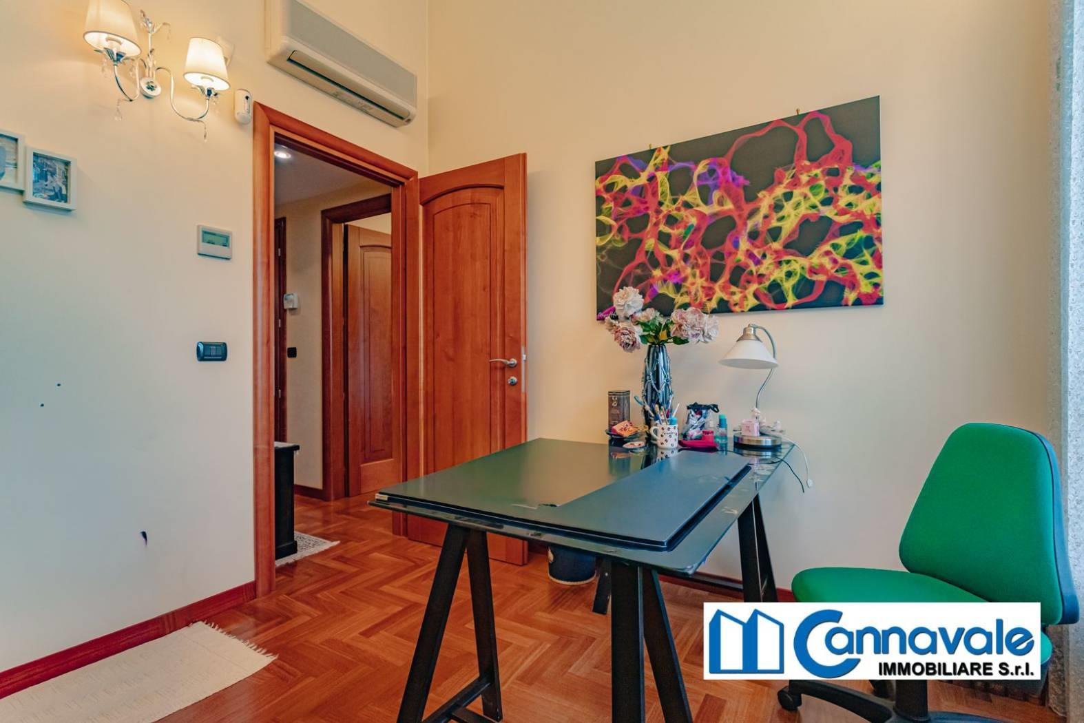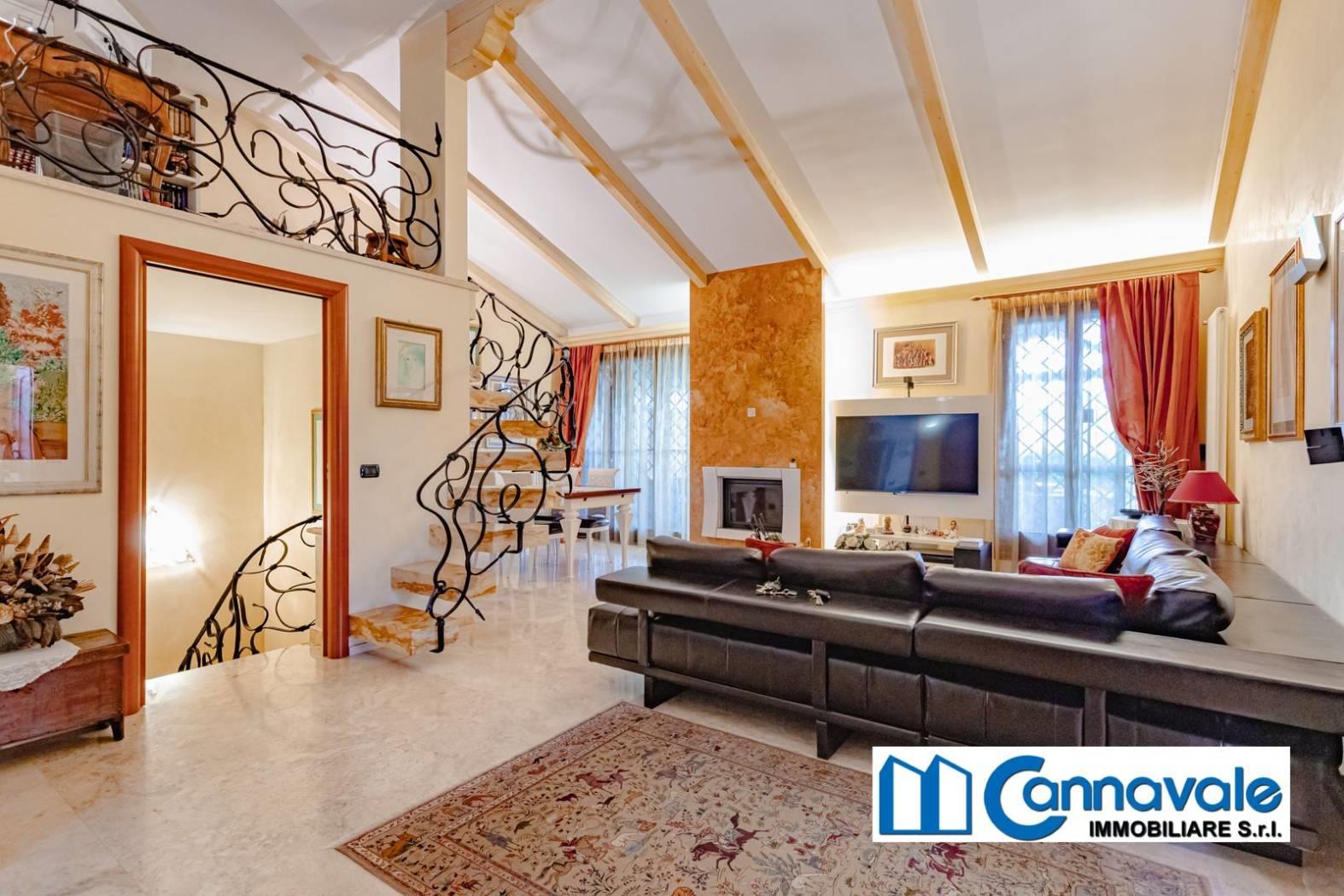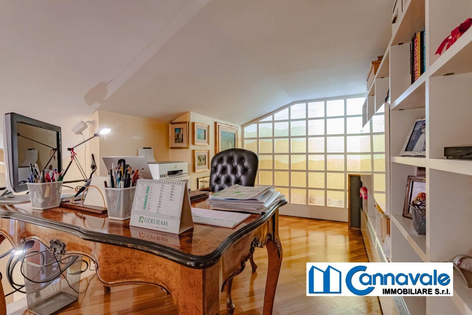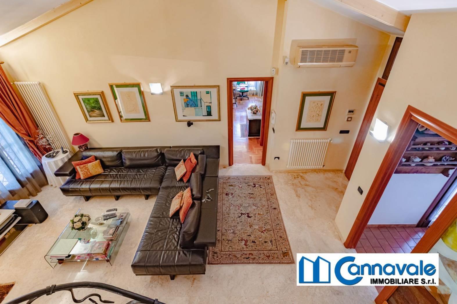 L'ingresso principale posto al pino rialzato conduce a un luminoso e salone, elegantemente suddiviso in zona pranzo e area salotto. Il piano è arricchito da un raffinato studio a vista e da un'ampia cucina abitabile dotata di un pratico locale dispensa. La zona notte su questo livello comprende due confortevoli camere da letto, di cui la padronale dotata di bagno en-suite, e un secondo servizio dedicato agli ospiti. Fiore all'occhiello della zona giorno è l'accesso diretto a un magnifico portico di circa 70 mq: un vero prolungamento della casa verso l'esterno, completamente attrezzato con area lounge, due distinte zone pranzo, forno e barbecue.