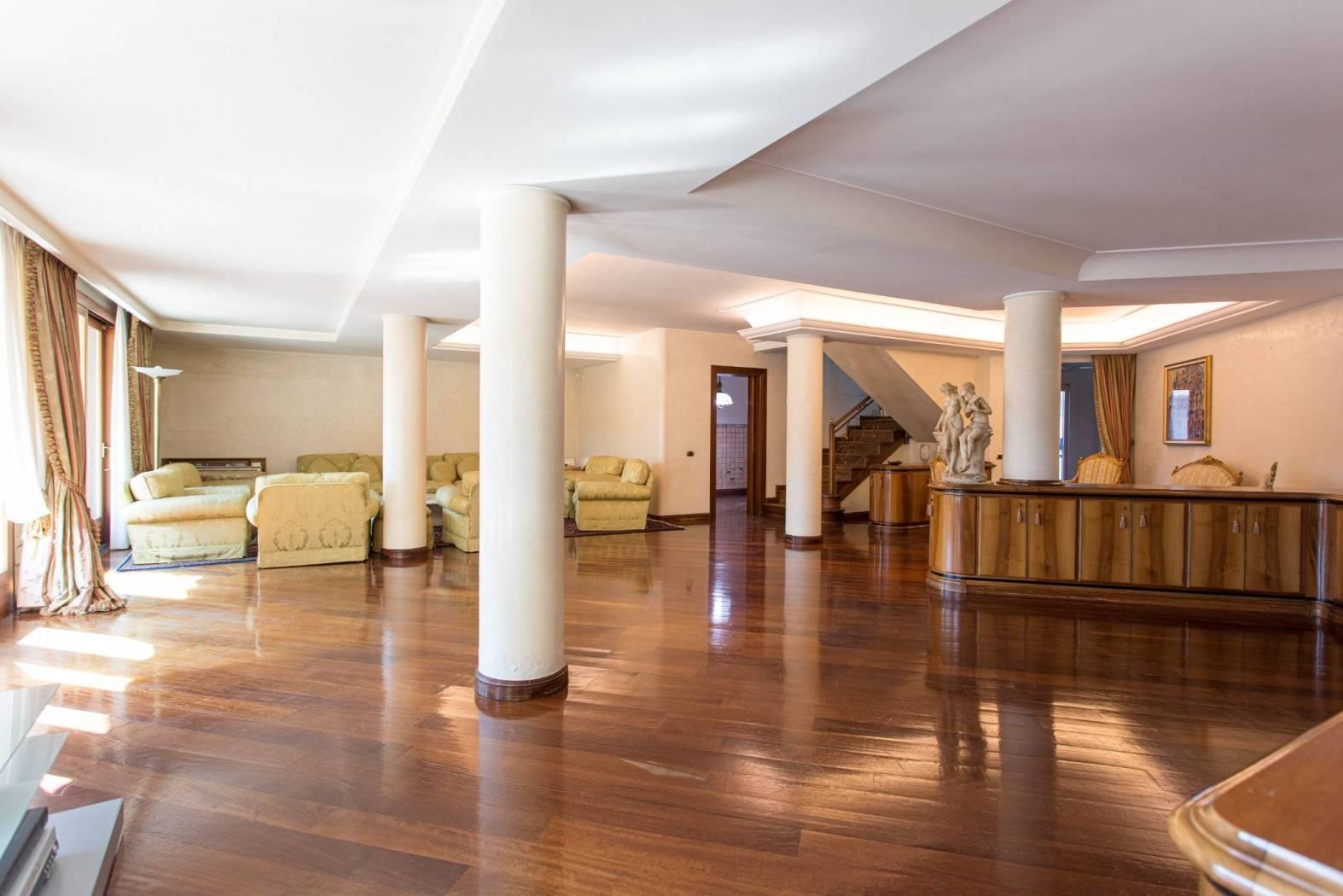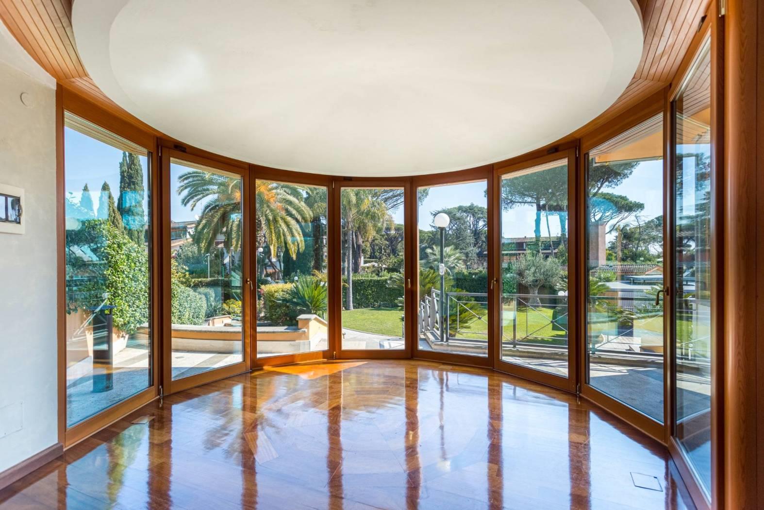 Within an elegant private residential complex in the renowned area of Casal Palocco, we are pleased to offer for sale a splendid portion of a villa of approximately 350 sqm, arranged over three above-ground levels, with a large private garden of 500 sqm and a convenient garage. The property stands out for the refinement of its interiors and the high quality of its finishes. Internal Layout: Ground Floor: Welcoming and bright living area with parquet flooring and fine finishes, spacious eat-in kitchen, master bedroom, and bathroom. First Floor: Elegant master suite with marble bathroom, plus an additional room currently used as a gym with a charming view of the park. Second Floor (top level): Three double bedrooms and a bathroom. Access to the upper floors is provided by both a comfortable staircase and a private internal elevator. Annex and Outdoor Spaces: Next to the garage, on the basement level, there is a 45 sqm annex currently used as accommodation for domestic staff. Features and Amenities: Excellent exposure (East – South – West), ensuring maximum natural light Independent heating system Air conditioning system Alarm system Photovoltaic panels and power generator Home automation system Automatic irrigation system Possibility to divide the property into two independent housing units Residential Complex Facilities: Shared swimming pool with reserved cabin and summer lifeguard service Tennis court Prestigious and private setting, closed to traffic, with controlled access via electronic barriers and video surveillance For those seeking to live in an exclusive villa surrounded by greenery, with all the comforts and security of a high-level private complex, this is a truly unique opportunity