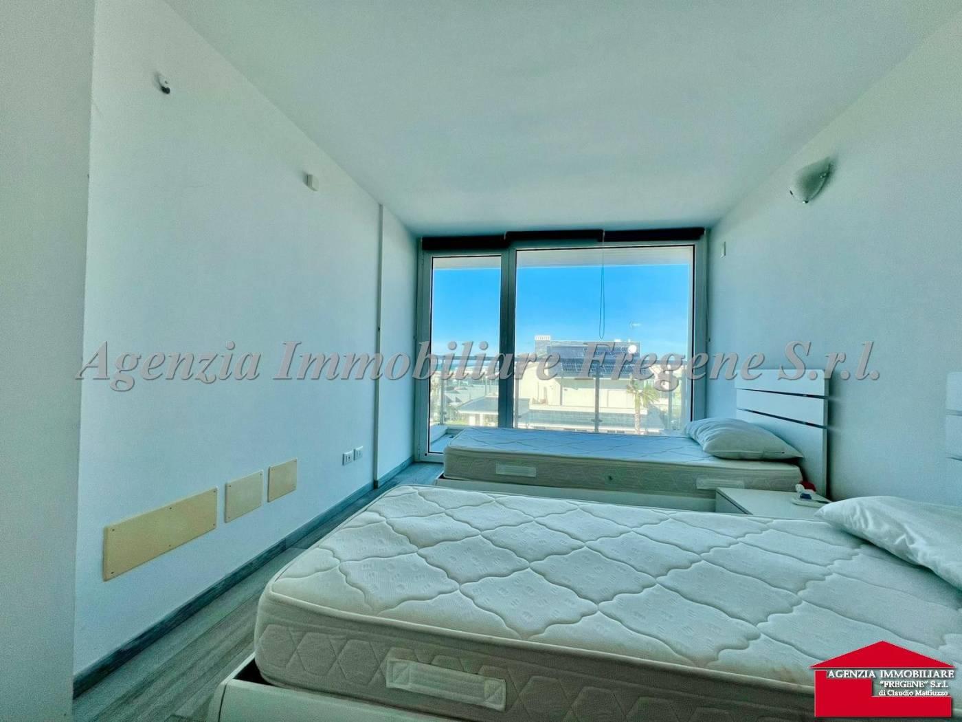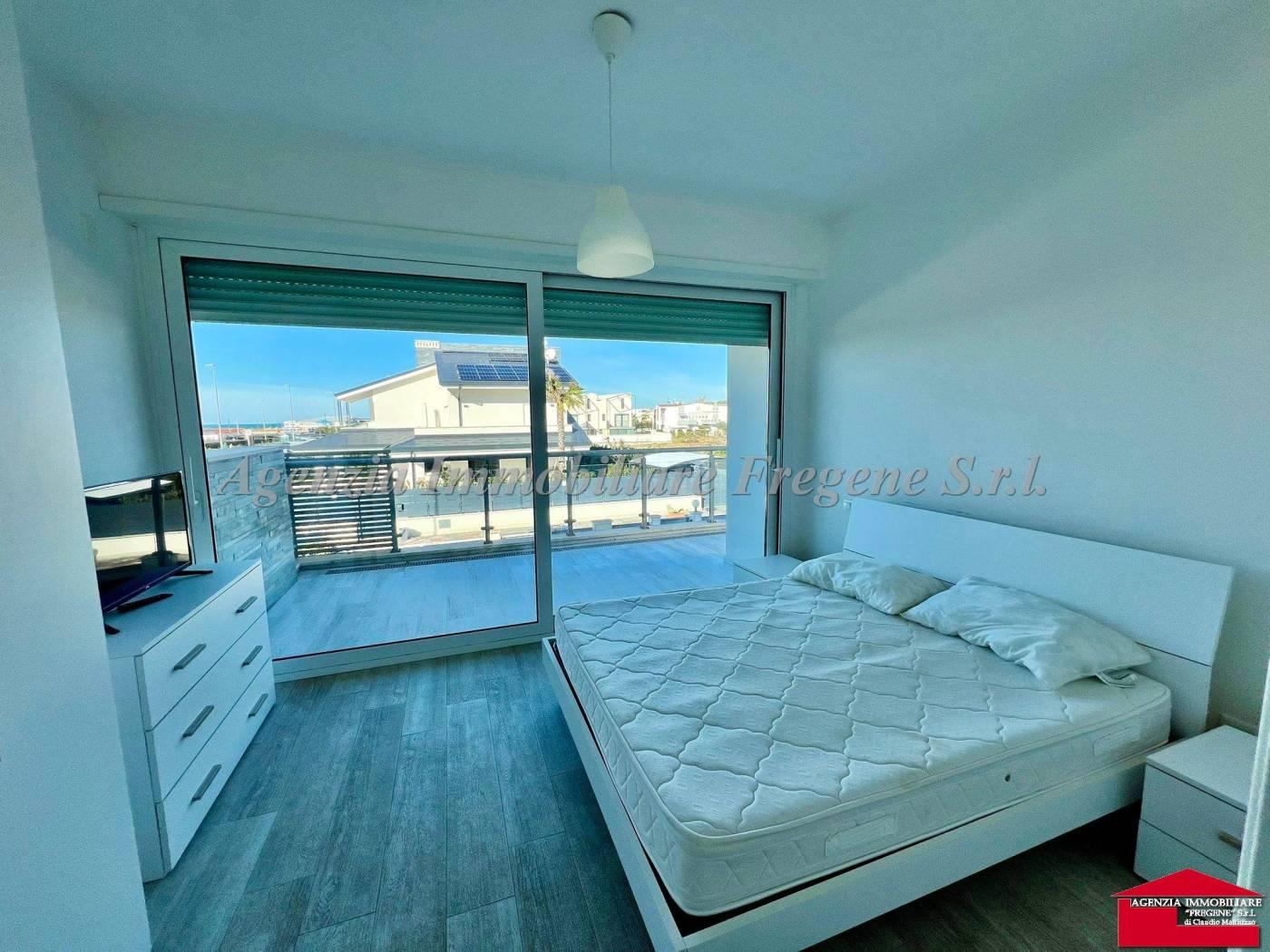 Camera matrimoniale con grande vetrata e terrazzo vista mare