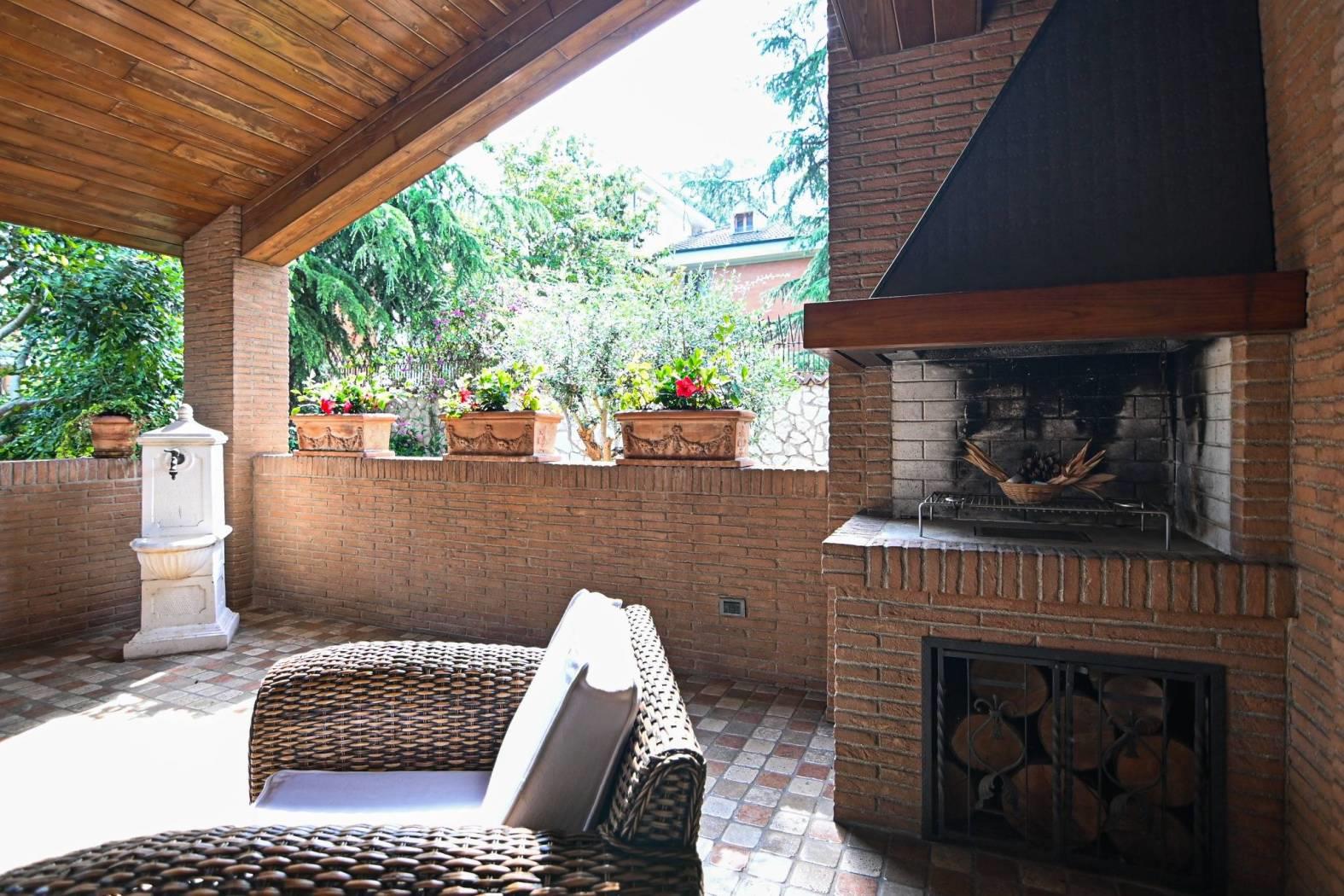 Al piano seminterrato ampiamente luminoso troviamo una sala hobby dotata di camino e forno a legna, cucina abitabile, bagno con doccia, piccola dispensa e locale tecnico dell'ascensore.