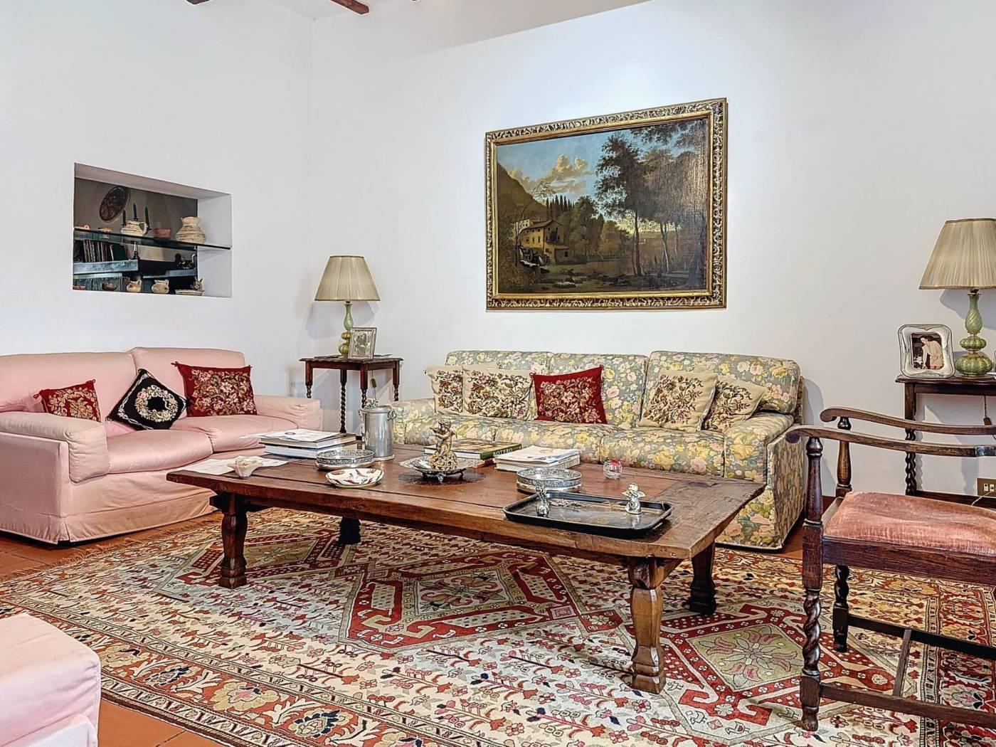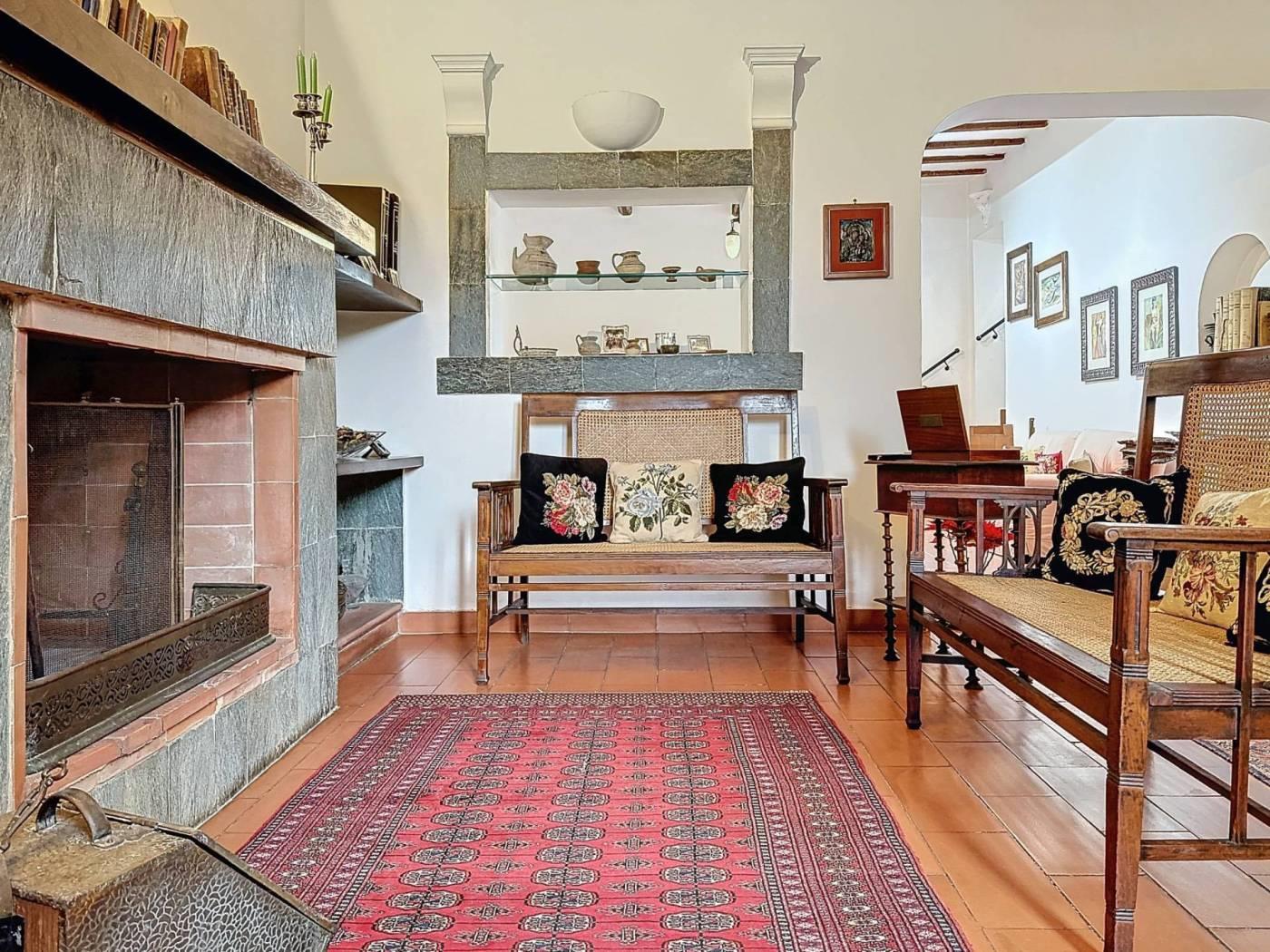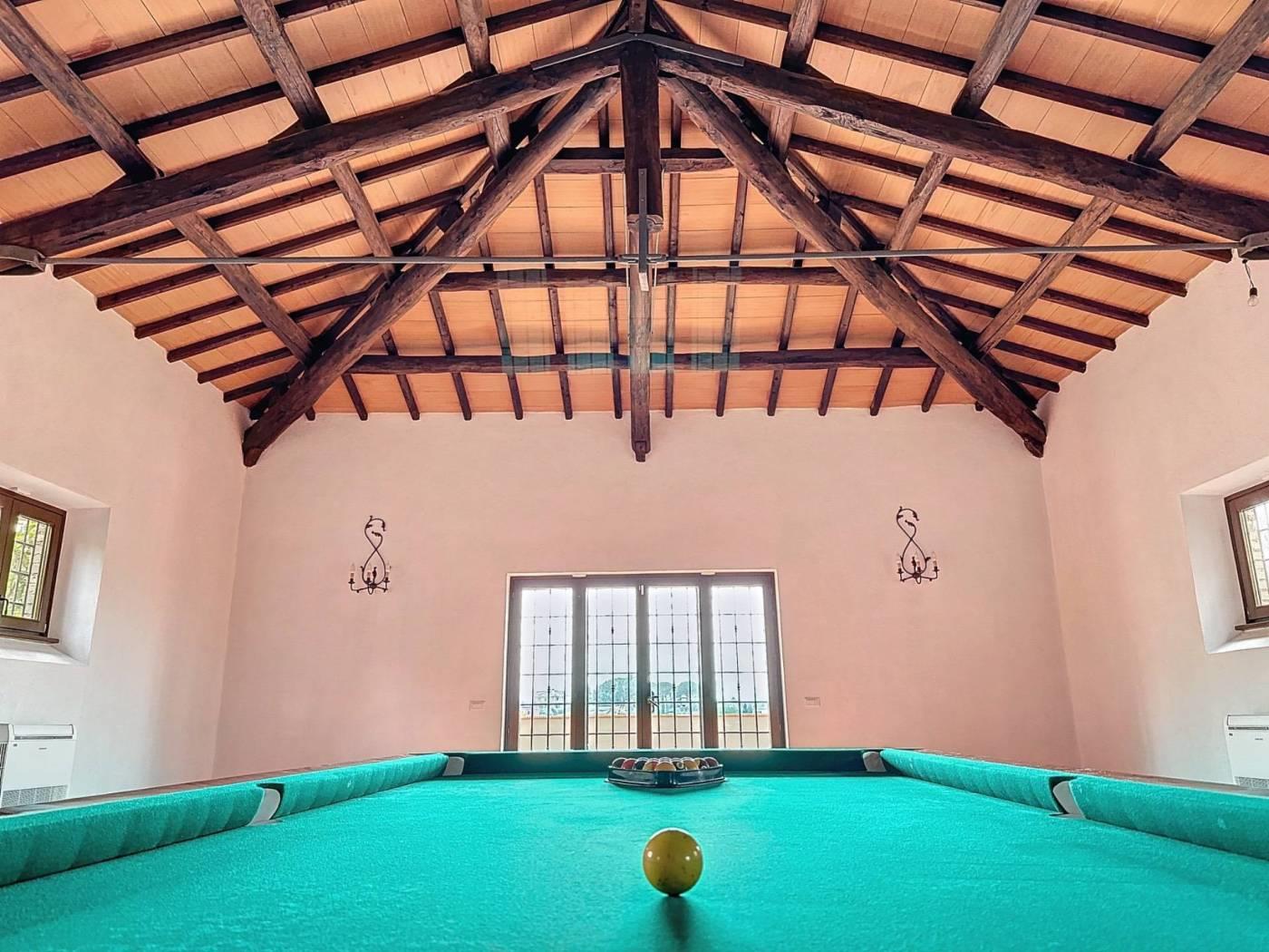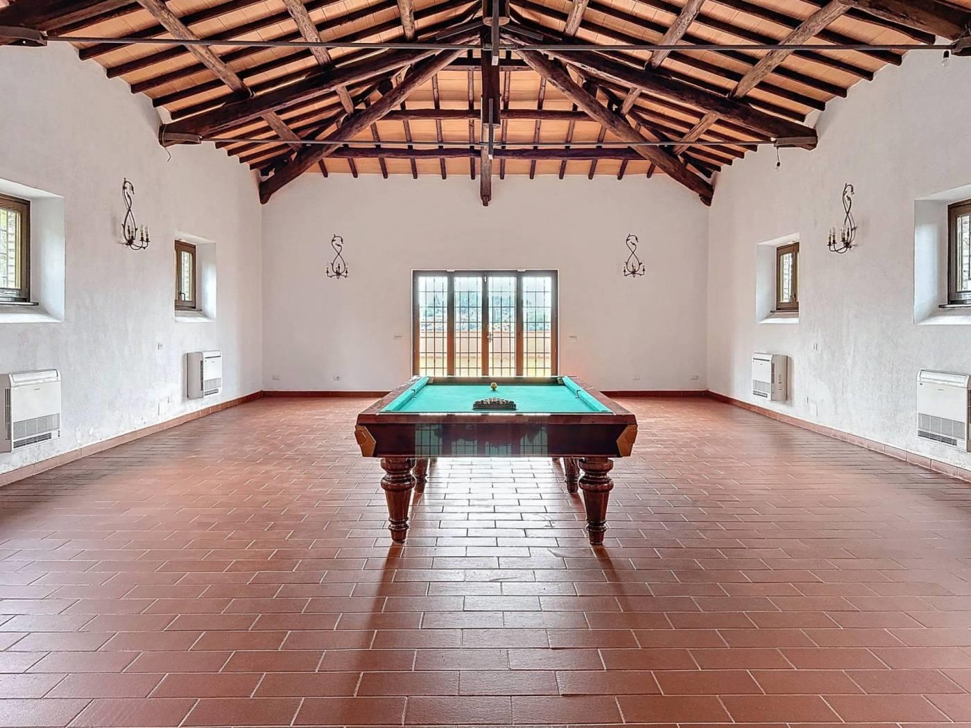 La residenza si articola in tre ampi saloni, ciascuno impreziosito da un camino, una cucina abitabile, tre camere da letto, tre bagni, oltre a disimpegno, corridoio, sala stiro, un angolo bar riservato e una sala hobby con tavolo da biliardo. Gli ambienti sono luminosi e ben distribuiti, valorizzati da una splendida esposizione che consente alla luce naturale di permeare ogni spazio, creando un'atmosfera calda e rilassante.
