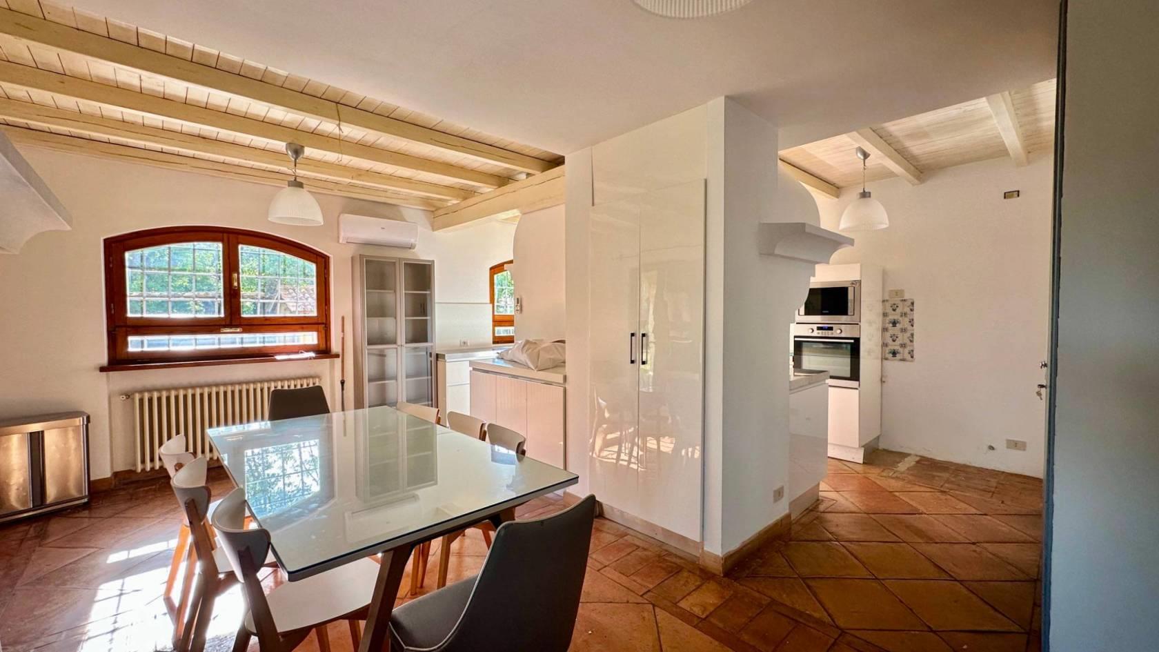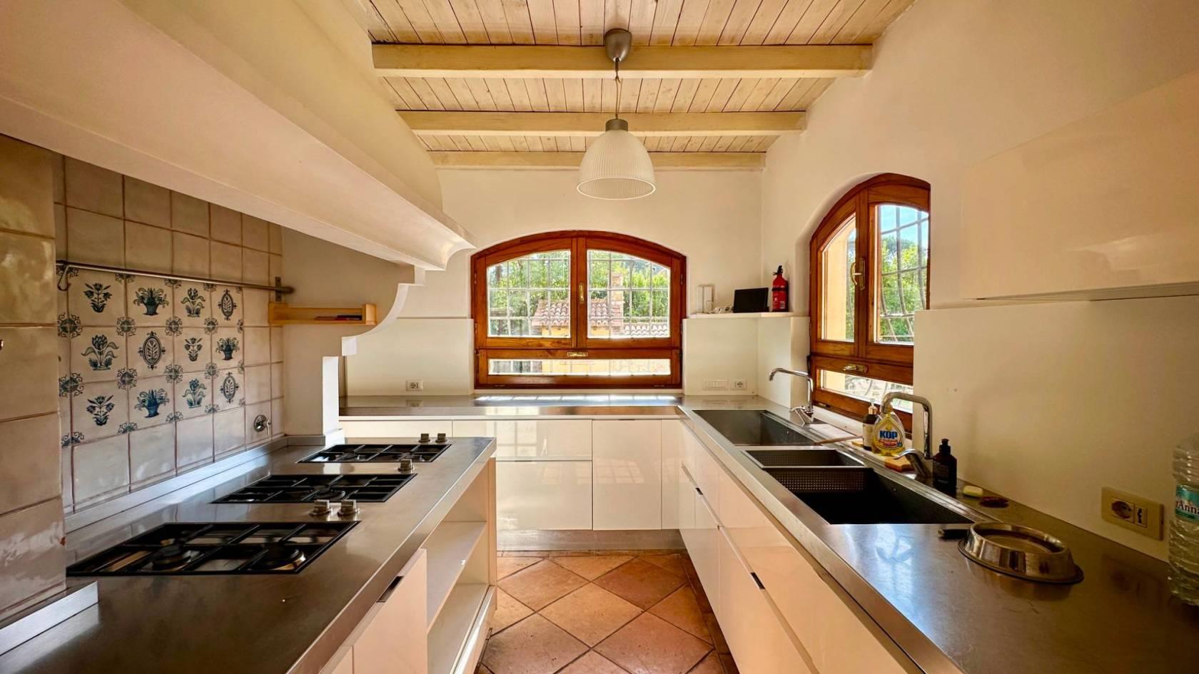 Sempre allo stesso livello una spaziosa sala da pranzo comunica con l'ampia cucina molto bene organizzata, anch'essa dotata sia di fuochi che di un grande camino/ forno,