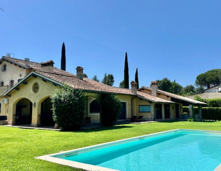 Un ampio giardino con piscina abbracciano tutto l'immobile.