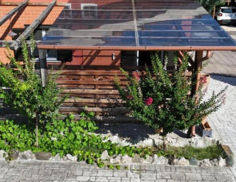 All'esterno troviamo una corte esterna di mq. 400 pavimentata con patio in legno, una cantina, copertura in legno con possibilità di parcheggio.