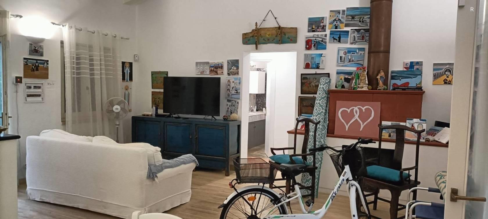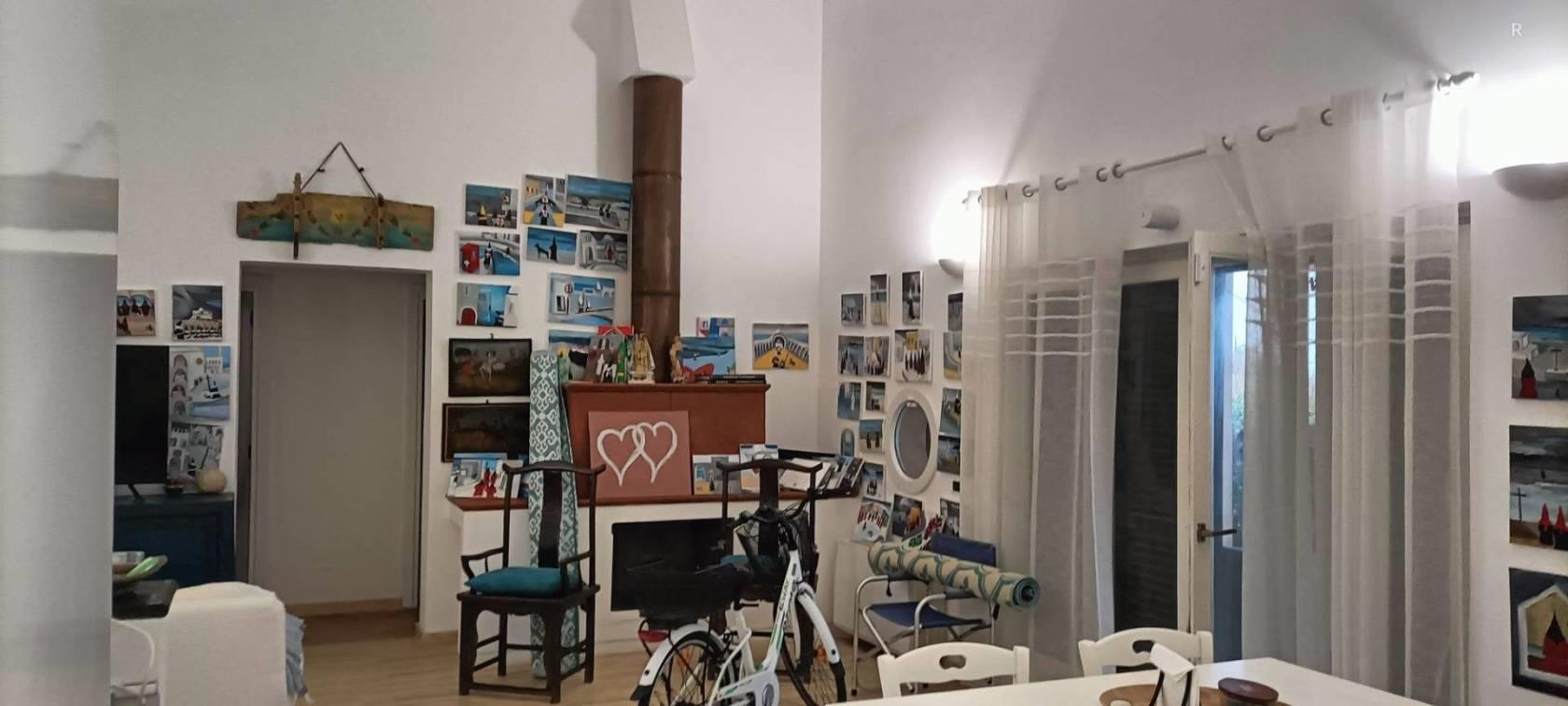 Il salotto è particolarmente accogliente, corredato di camino ed ampie finestra vista mare.