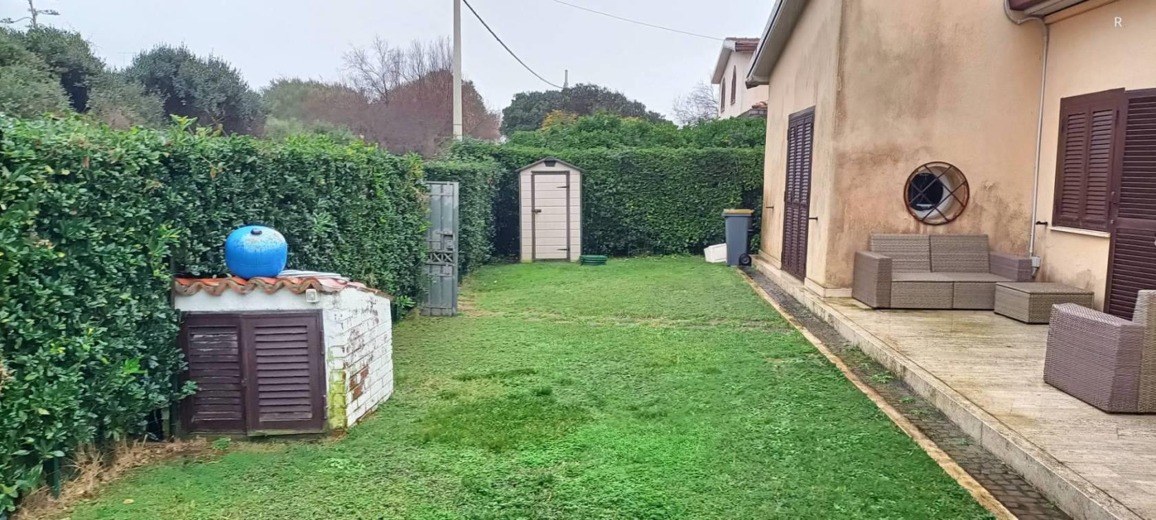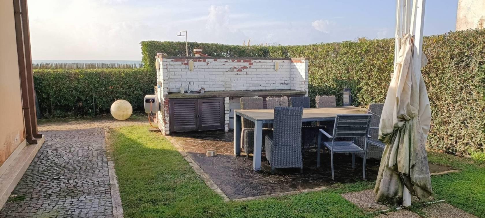 Oltre al giardino privato, la proprietà dispone anche di un ampio spazio esterno adatto per pranzi e cene all'aperto, perfetto per chi ama trascorrere momenti di relax in compagnia.