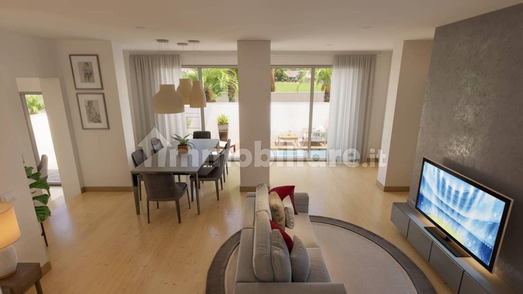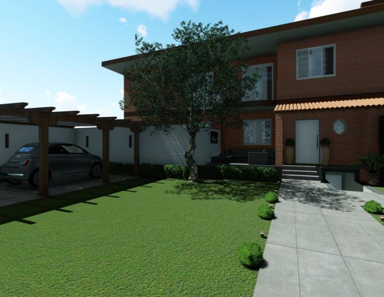 PIANO TERRA: ampio salone triplo luminoso, sala da pranzo, cucina abitabile, studio, un bagno, portico coperto anteriore e portico coperto posteriore che si aprono su uno splendido giardino privato di circa 850 mq.