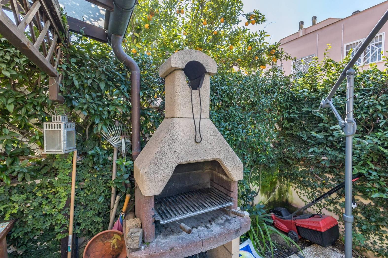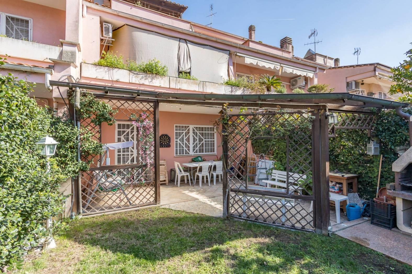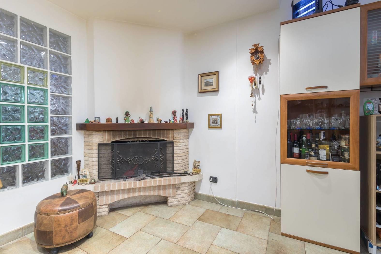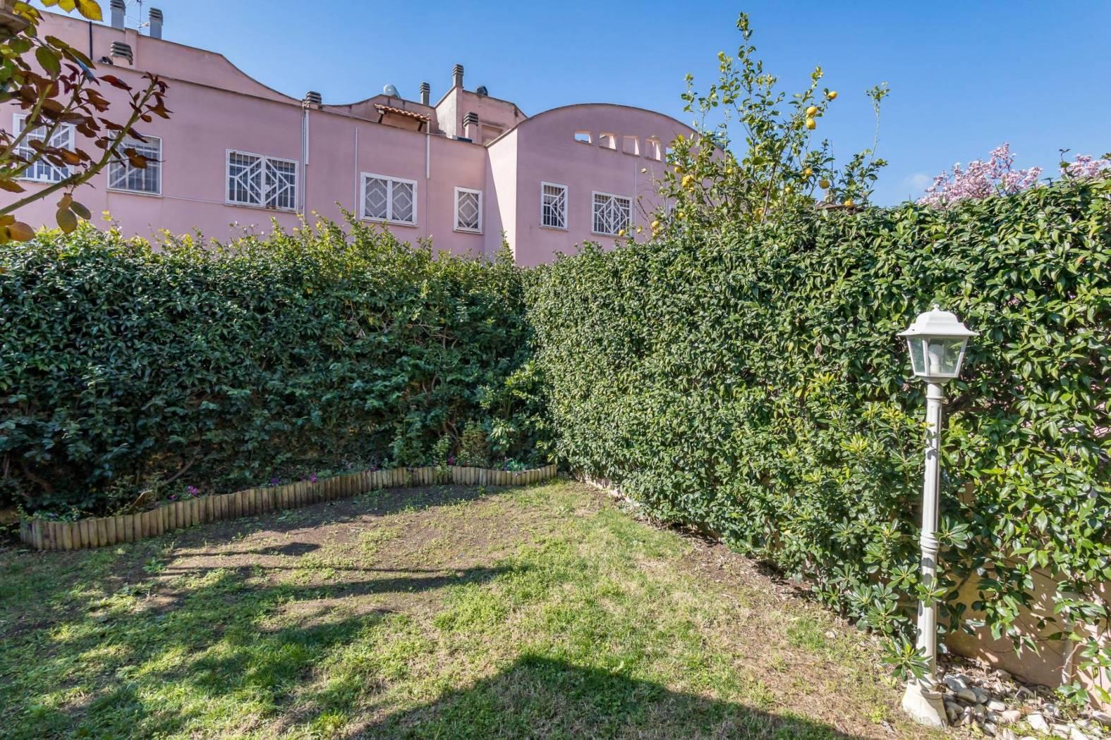 Appena varcata la porta d'ingresso si viene accolti da un ampio salone con camino, un ambiente caldo e luminoso che diventa il cuore della casa: perfetto per serate in famiglia o per ricevere ospiti. Le finestre in legno con doppio vetro, complete di inferriate e zanzariere, garantiscono sicurezza, isolamento e comfort. Dal salone si accede direttamente al giardino privato sul retro di circa 60 mq, uno spazio intimo e riservato con tettoia e impianto di irrigazione, ideale per pranzi all'aperto, momenti di relax o per chi ama vivere anche l'esterno della casa. Completa il piano una cucina abitabile, un bagno di servizio e un comodo ripostiglio.