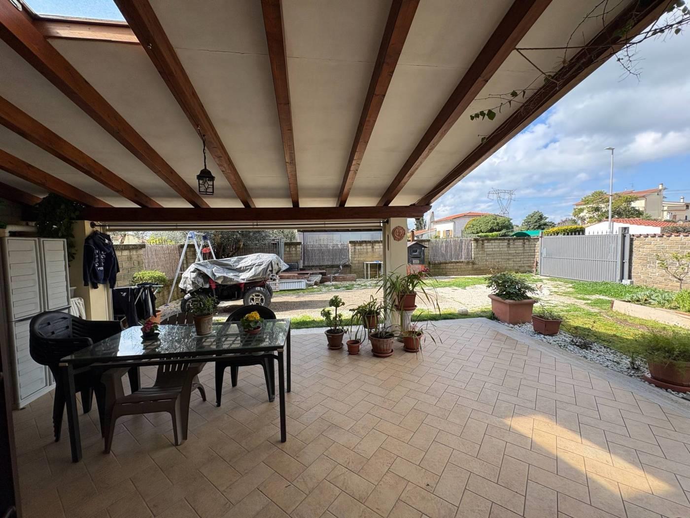 Accogliente e luminoso living con zona pranzo, cucina abitabile separata, ampio bagno con doccia e accesso diretto al grande portico esterno. Completa il piano un curato giardino di circa 300 mq, dotato di cucina esterna e posti auto interni.
