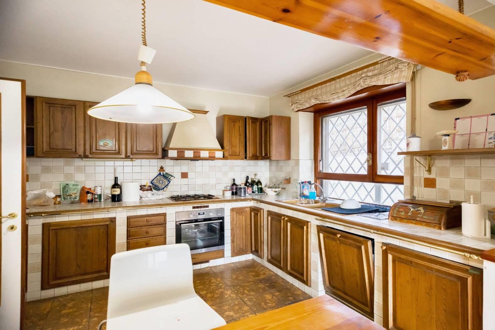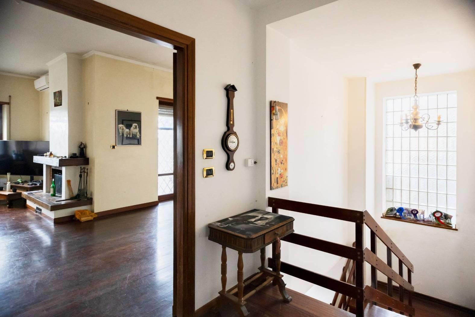 La villa, di mq 256 commerciali, si sviluppa su due livelli così suddivisi: al piano terra troviamo un ampio ingresso, salone doppio con camino e accesso ad un terrazzo vivibile, cucina abitabile con tinello, camera da letto matrimoniale, bagno, armadi a muro; tramite una scala interna in legno si accede al piano S1 dove troviamo una grande sala hobby con camino con accesso al portico ed al giardino, due camere da letto, bagno, cucinotto, armadi a muro e zona deposito/lavanderia, lastrico solare. La villa è circondata da un giardino terrazzato dove sono presenti meravigliosi alberi secolari ad alto fusto. La posizione panoramica rende la villa un pezzo unico in zona, garantendo un'eccezionale vista sulla vallata ed un'ottimale esposizione al sole.