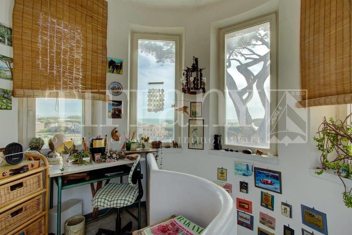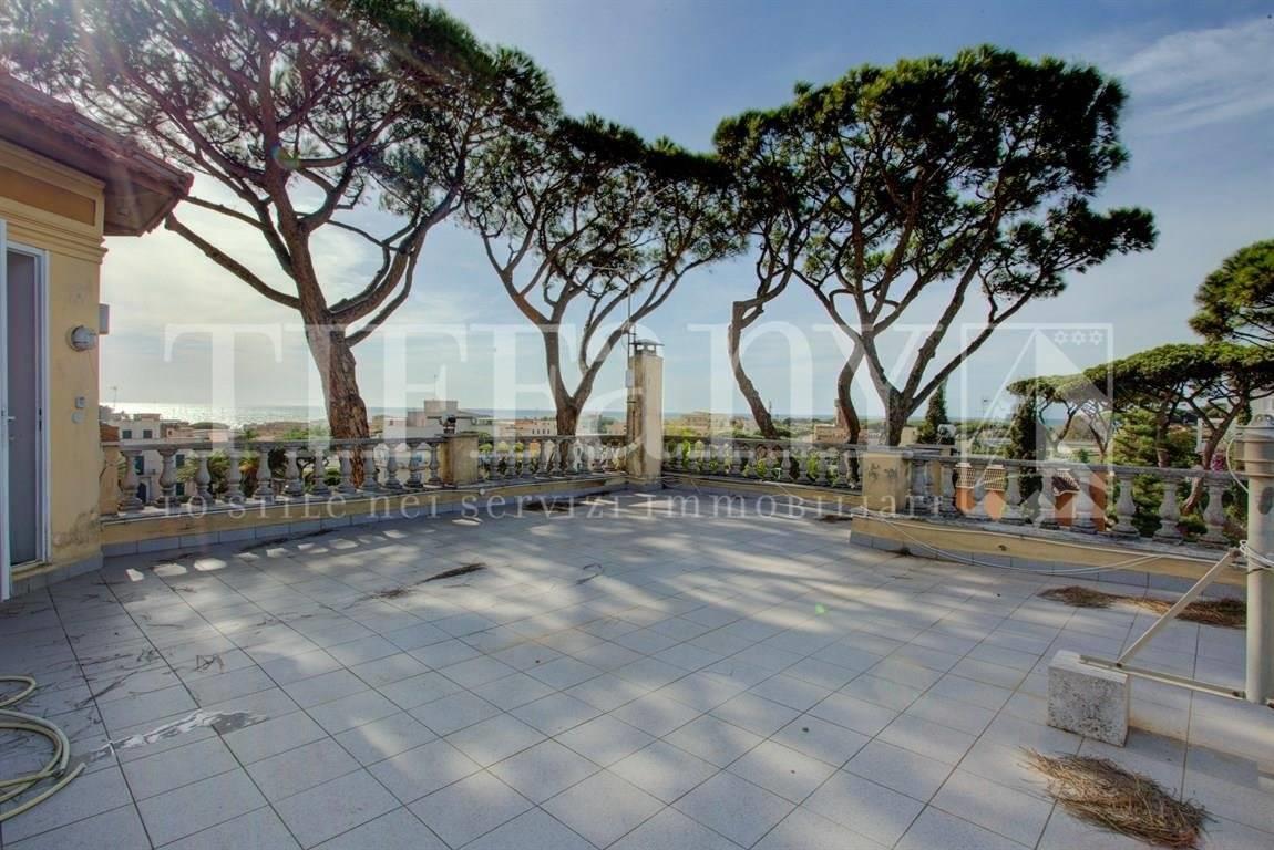 Una scala interna conduce alla torretta posta al piano superiore e adibita a studiolo ed a un grande terrazzo panoramico di circa 70 mq. La vista dal terrazzo è totale su tutta la città di Anzio e sul mare fino alle isole pontine.
