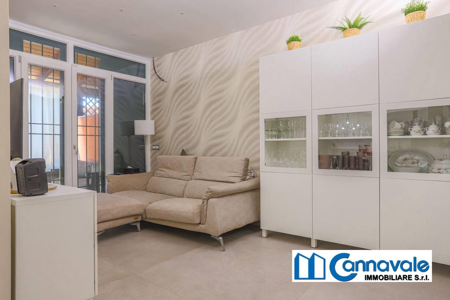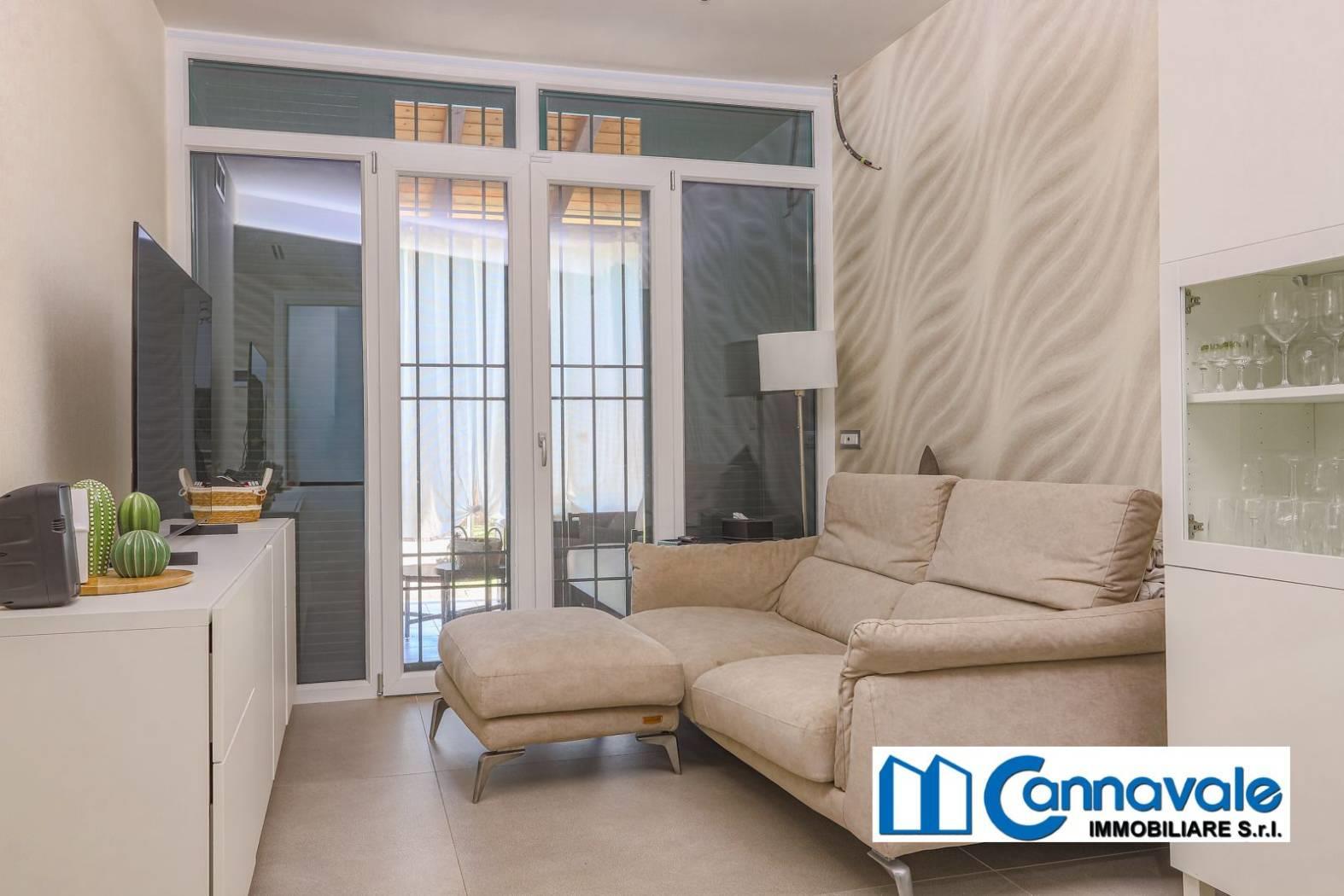 • Piano Terra: Accoglie un luminoso salone doppio con cucina a vista, un servizio, una comoda lavanderia, portico e un curato giardino di 150 mq.