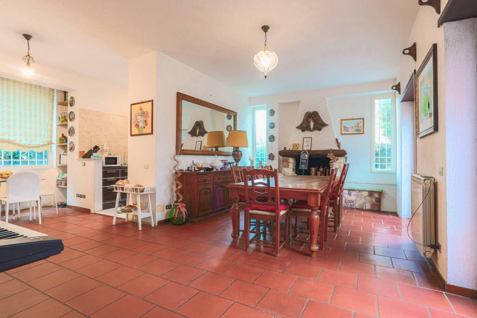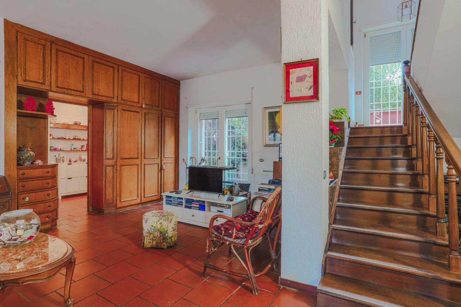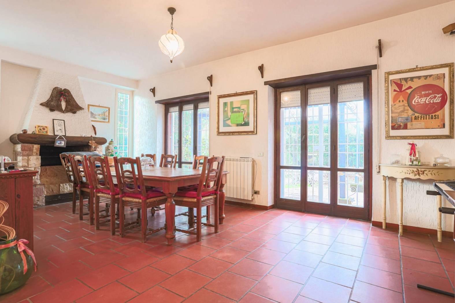 Circondata da un parco privato di circa 800 mq, la villa offre spazi di rappresentanza dal sapore classico. Al piano terra, caratterizzato da soffitti alti 2,90 mt che conferiscono grande signorilità, troviamo un doppio fulcro di convivialità: un ampio salone impreziosito da un camino, ideale per la zona living, un tinello separato dotato di un secondo camino, perfetto per cene intime e familiari ed un bagno.