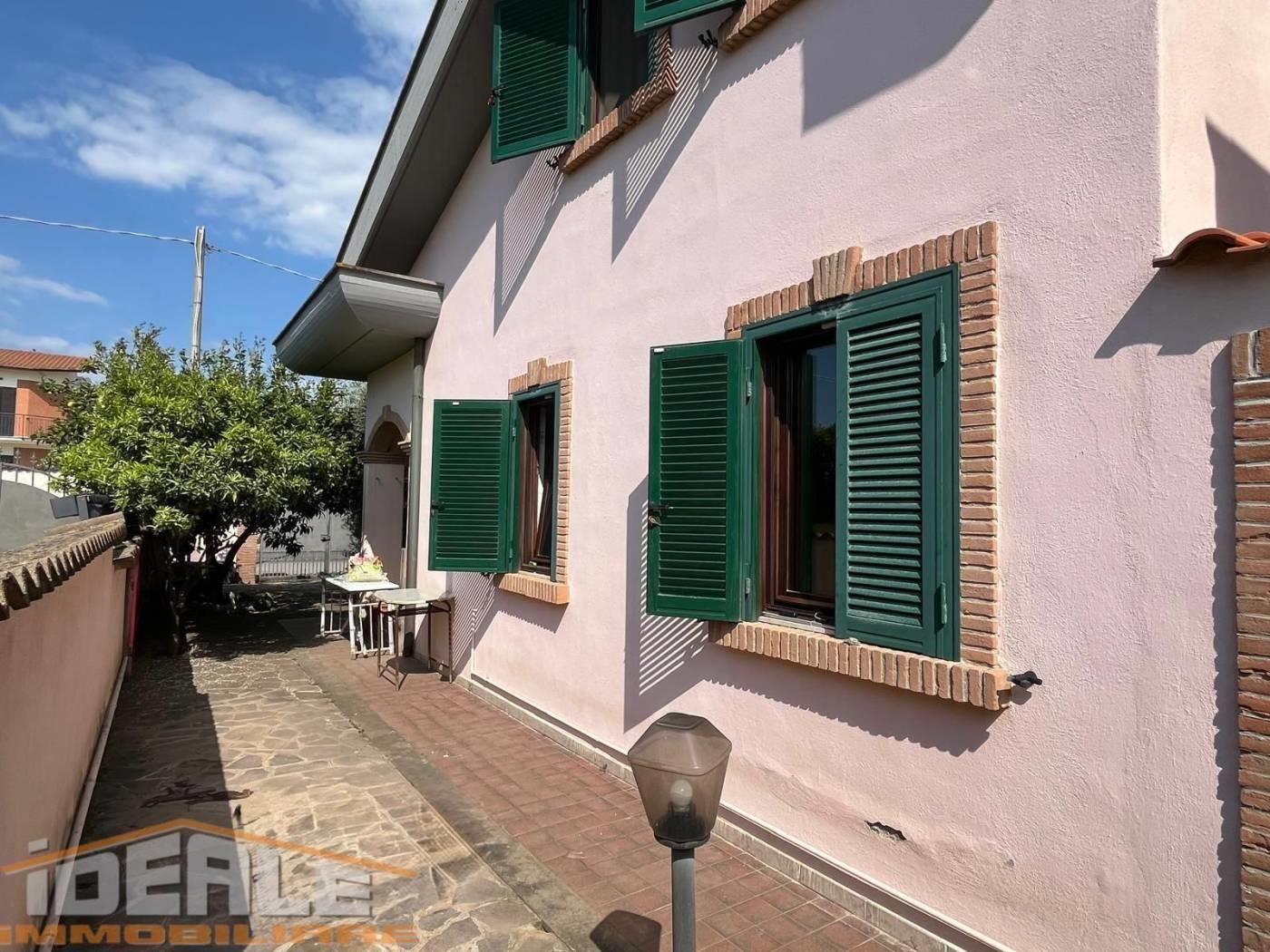 NUOVA CALIFORNIA. Proponiamo in vendita villino angolare fronte strada, su due livelli, composto da zona giorno con camino, cucinotto, camera da letto matrimoniale e bagno al piano terra, e da due camere da letto matrimoniali, cameretta singola e bagno al piano primo. Balcone. Patio . Giardino con passo carrabile. Persiane blindate. Riscaldamento metano. Classe energetica g. € 187.000