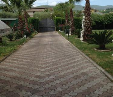 La proprietà dispone di una corte adibita a giardino in parte mattonata che ci da accesso all'abitazione e di un' ampia zona verde retrostante l'immobile con gazebo e zona barbeque. Completano la proprietà 4 posti auto scoperti in parcheggio comune con cancello automatico.