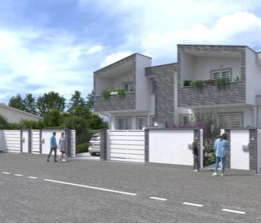 Proponiamo in vendita porzioni di trifamiliare di nuova costruzione immerse nel verde nel quartiere di Dragona, precisamente in via Capizzone. Le ville sono suddivise su 2 livelli completamente fuori terra e sono composte da: piano terra rialzato, salone con cucina a vista e un bagno finestrato. Al piano superiore troviamo due camere da letto, un secondo servizio e terrazzo con vista panoramica. Ognuna delle abitazioni si differenzia dalle altre per variazione di metratura del giardino, nel quale è compreso anche il posto auto, e per la sua esposizione. La nuova costruzione offre la presenza di pannelli fotovoltaici e pannelli solari per acqua calda sanitaria ed è realizzata con tecnologie all’avanguardia come il riscaldamento a pavimento e isolamento termico-acustico. Le finiture potranno essere scelte dall'acquirente come da capitolato oppure in base ai propri gusti.