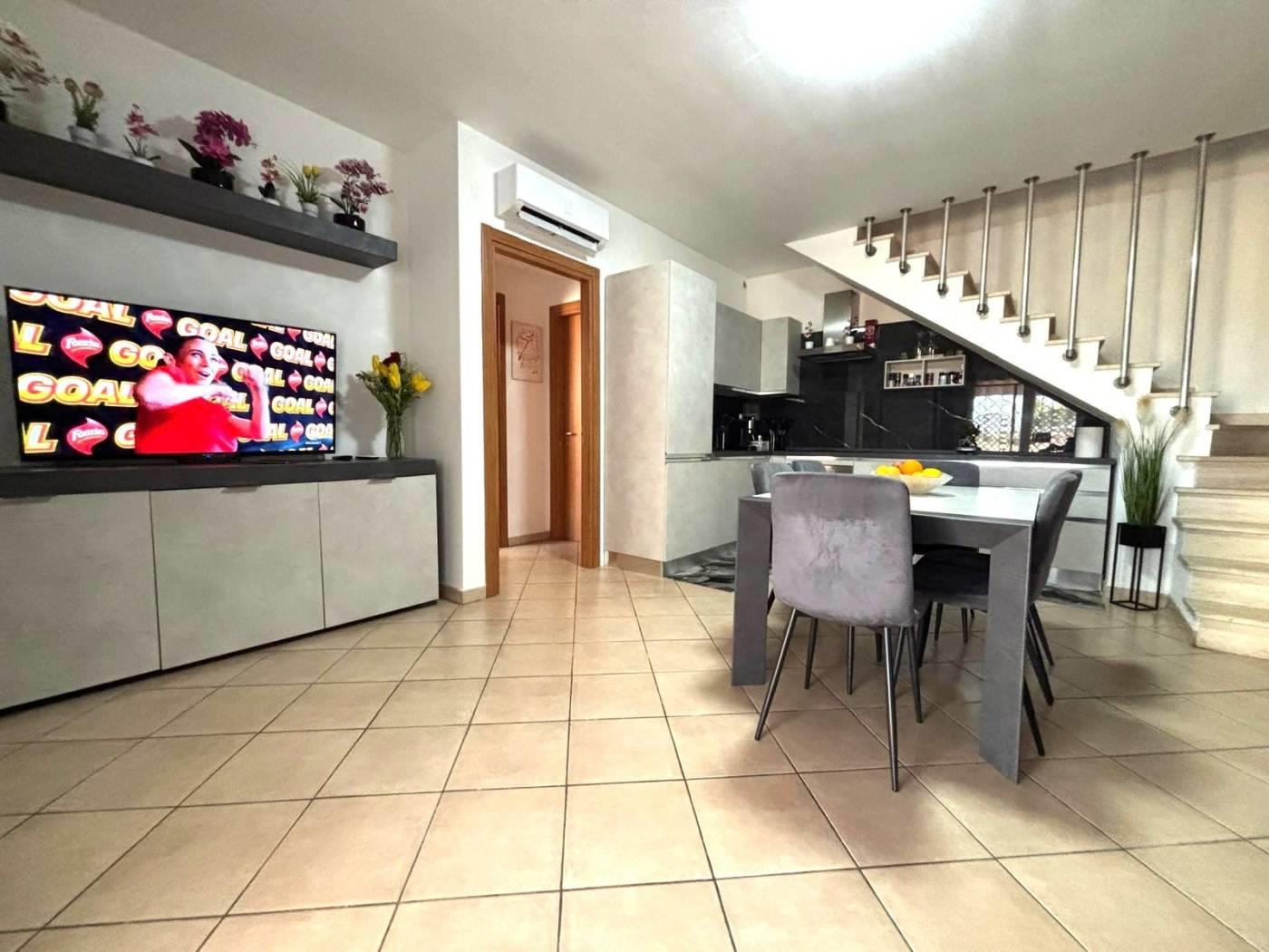 Tramite scala interna si accede al secondo livello composto da una camera e da un ulteriore bagno. Completa la proprietà una veranda ideale per momenti di relax ed un giardino angolare di circa 100mq.