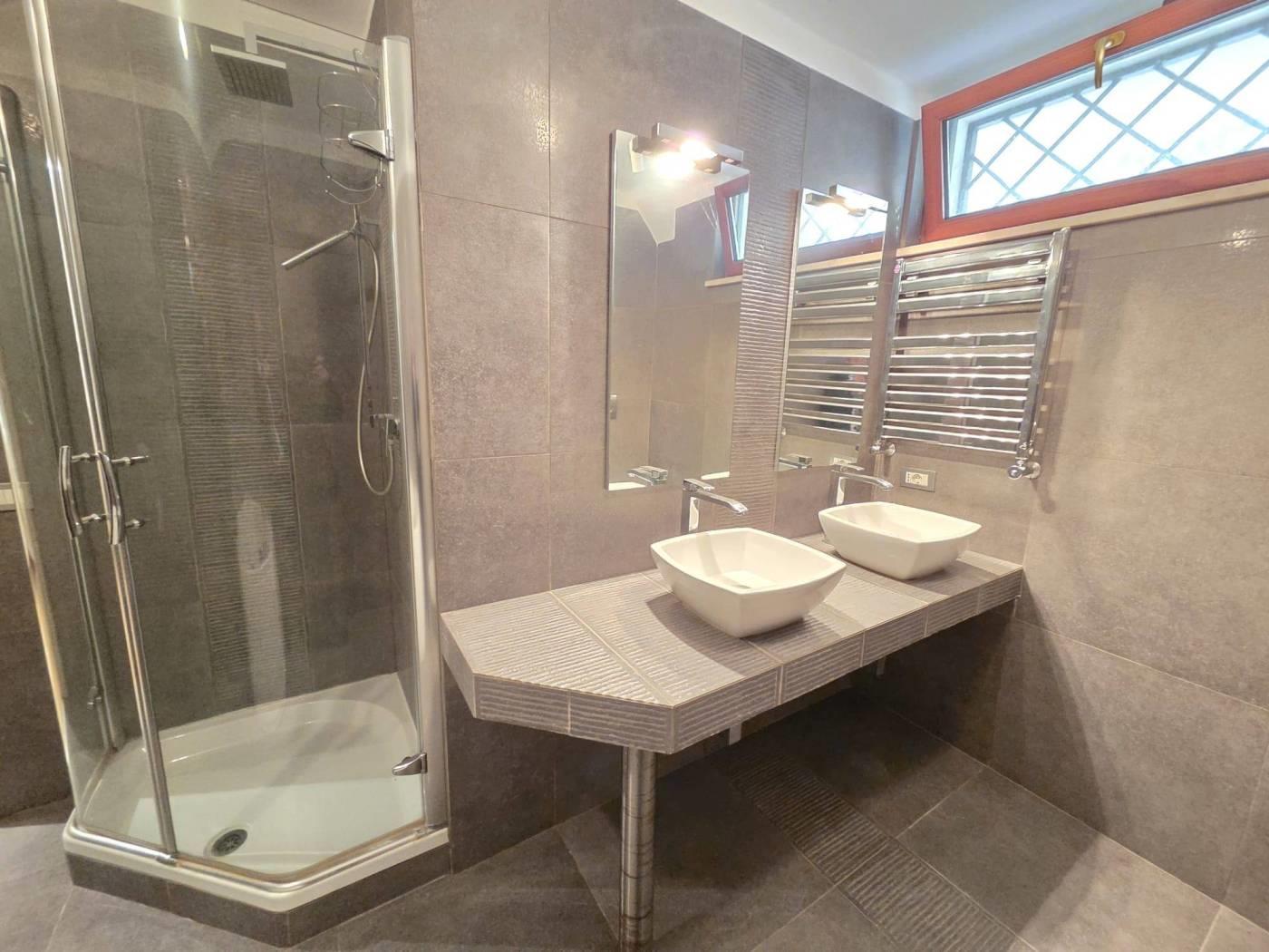 L’immobile si trova in un contesto signorile e tranquillo, in una zona ben servita da negozi, scuole e fermate dell’autobus. Il villino presenta una doppia esposizione che assicura un’ottima luminosità agli ambienti interni. Al piano rialzato si sviluppa il soggiorno con angolo cottura e un servizio igienico. È presente la canna fumaria ed è predisposto per l’installazione del camino. Nel piano seminterrato sono collocate due camere da letto, di cui una con cabina armadio e pavimentazione in parquet di rovere, oltre a un secondo bagno con vasca idromassaggio. Tutte le camere sono dotate di porte a scrigno. All’ultimo piano si trova un’ulteriore cameretta. L’immobile è protetto da grate e infissi con vetro camera su tutte le finestre. Completano la proprietà un posto auto scoperto, due giardini – anteriore e posteriore – parzialmente pavimentati in porfido nella zona barbecue, ideale per momenti di relax all’aperto, e un pozzo utilizzato per l’irrigazione.