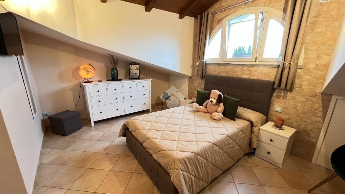 Piano Superiore: disimpegno con accesso al balcone, camera matrimoniale con caratteristici soffitti in legno con travi a vista, camera singola attualmente adibita a cabina armadio e bagno;